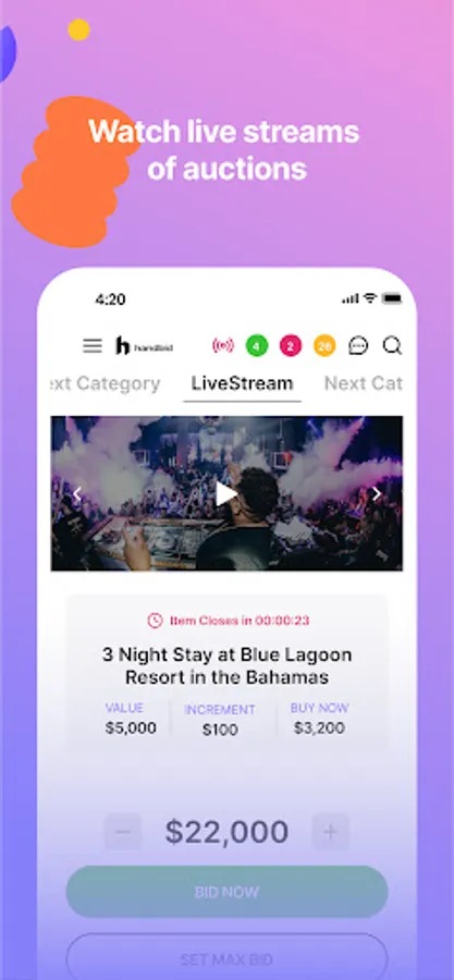 Handbid has powered hundreds of events and delighted thousands of bidders in the process. With native apps for iPhone and Android as well as a kiosk app available for the iPad for non-smartphone users, there is not a better experience and solution for running your silent auction.