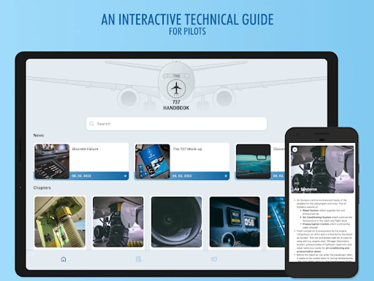 The 737 Handbook is an interactive technical guide for pilots which provides a quick reference for sim or interview preparation from initial type rating to command upgrade. The app features interactive schematics, photos and videos with unique content.