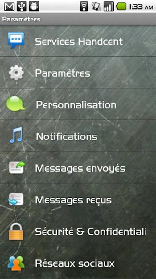 This is Handcent SMS French Language pack,install it will support display French user interface at Handcent SMS