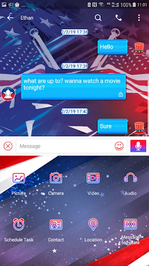 Apply the theme by launching Next SMS app ,go to "More" window ,then "Theme"->"Mine"->"My Themes"