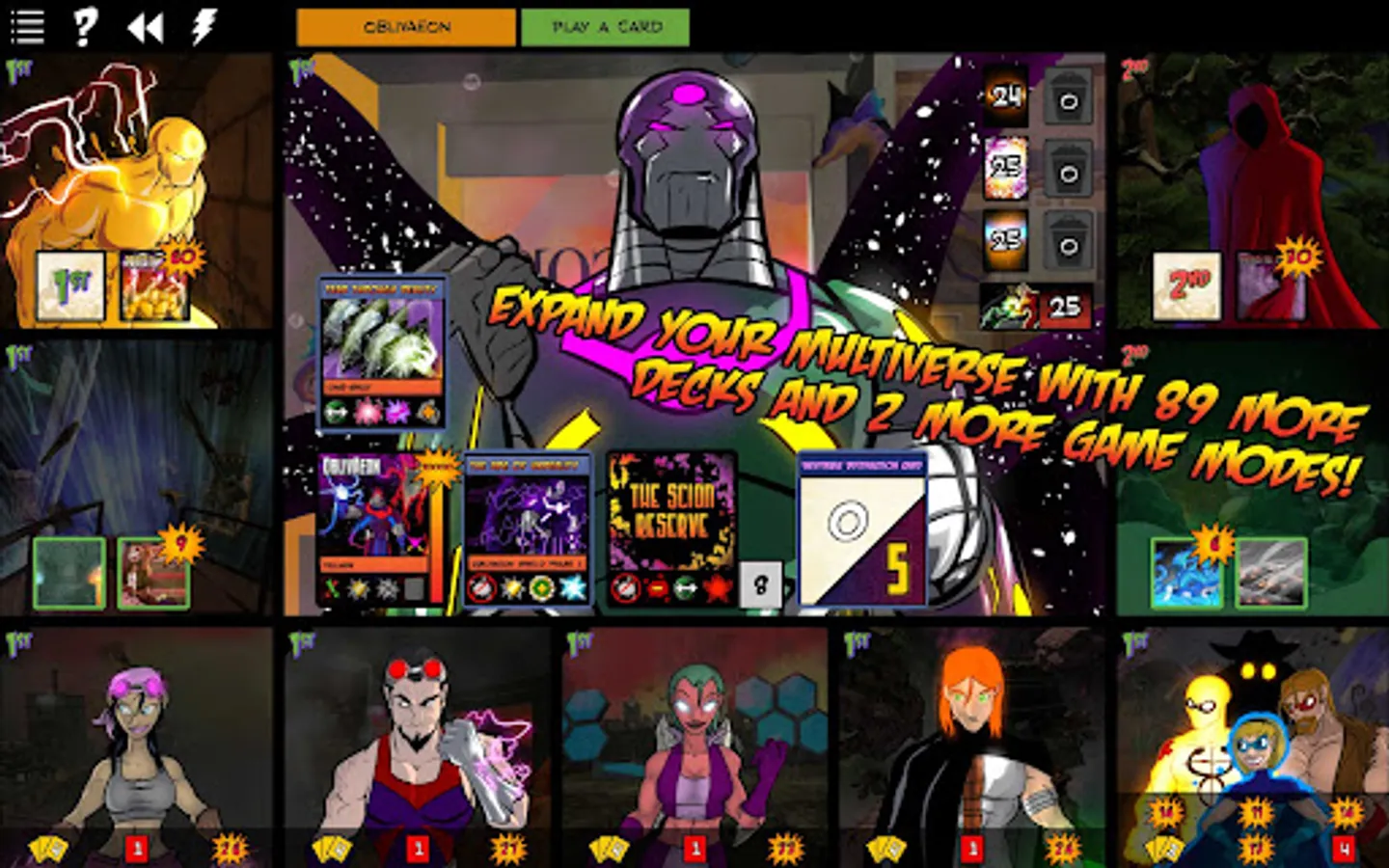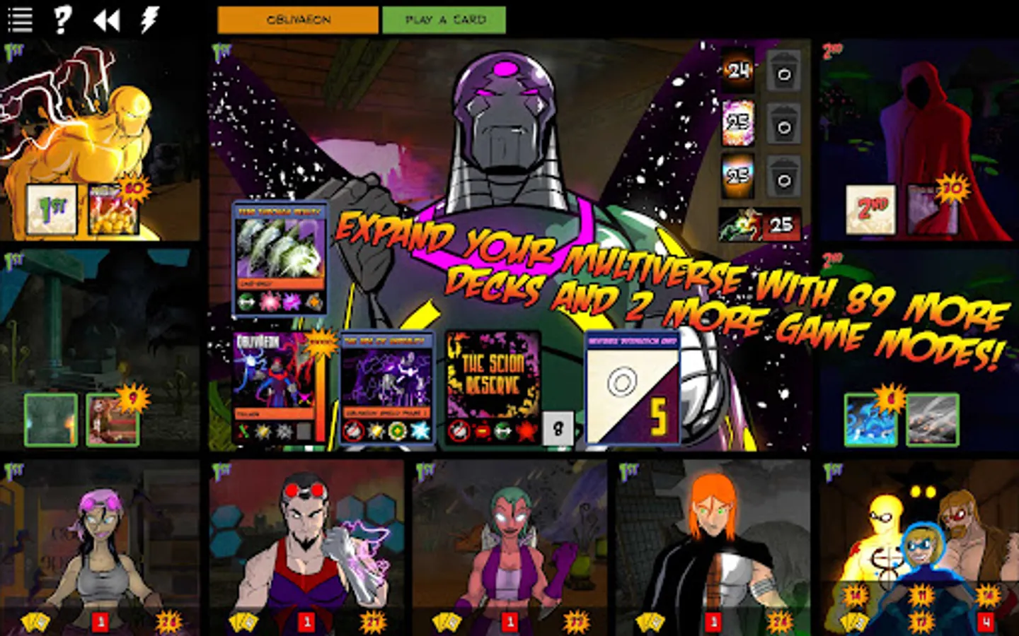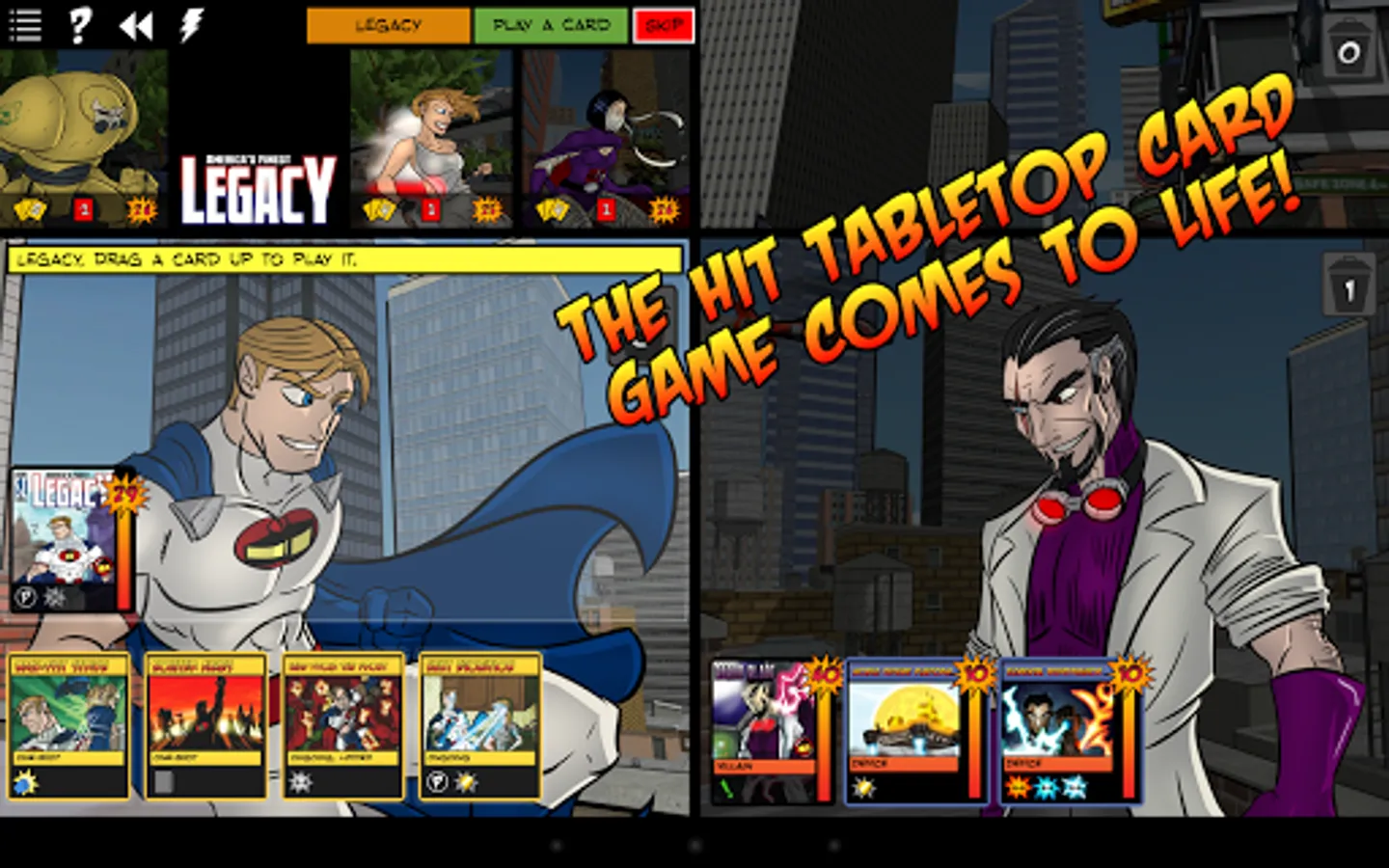 The digital version of SotM plays like a comic book come to life! Control an entire team of heroes in single player, or head online and join heroes from around the globe in multiplayer. This is cooperative card-battle like you’ve never played before!