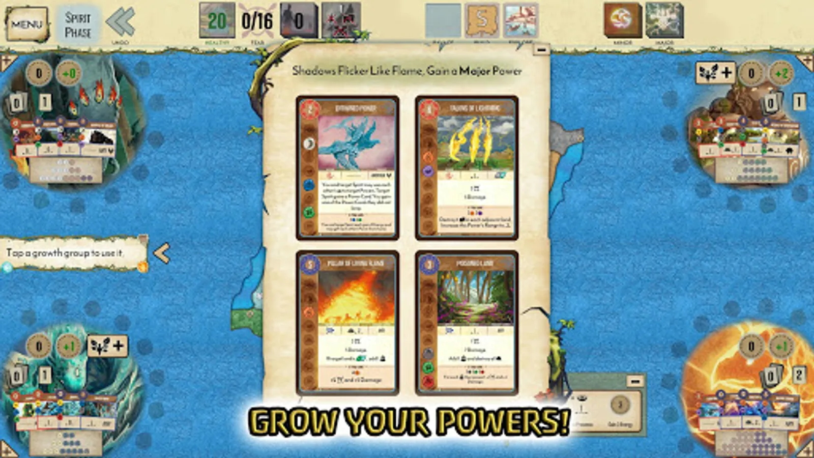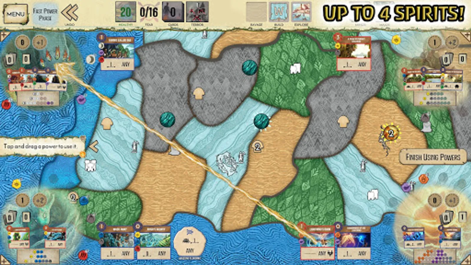 • Create custom games with up to 4 available spirits and play 5 full turns
