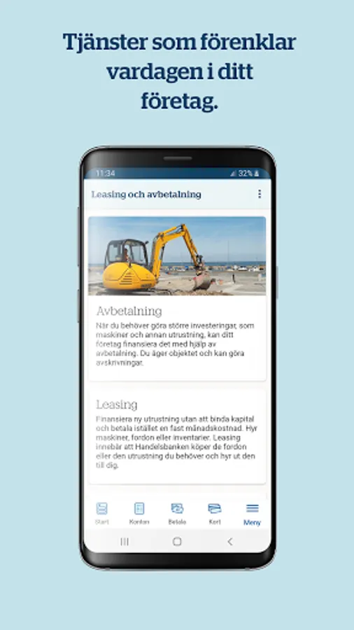 With Handelsbanken Mobiltjänst Företag, you as a company representative can carry out your most common banking matters.