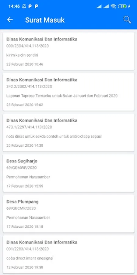 Adapun beberapa jenis surat yang ada dalam aplikasi: