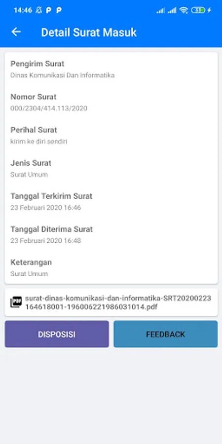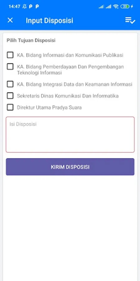 Apabila ada disposisi atau feedback maka , akan ada pemberitahuan secara realtime kepada penerima disposisi/feedback.