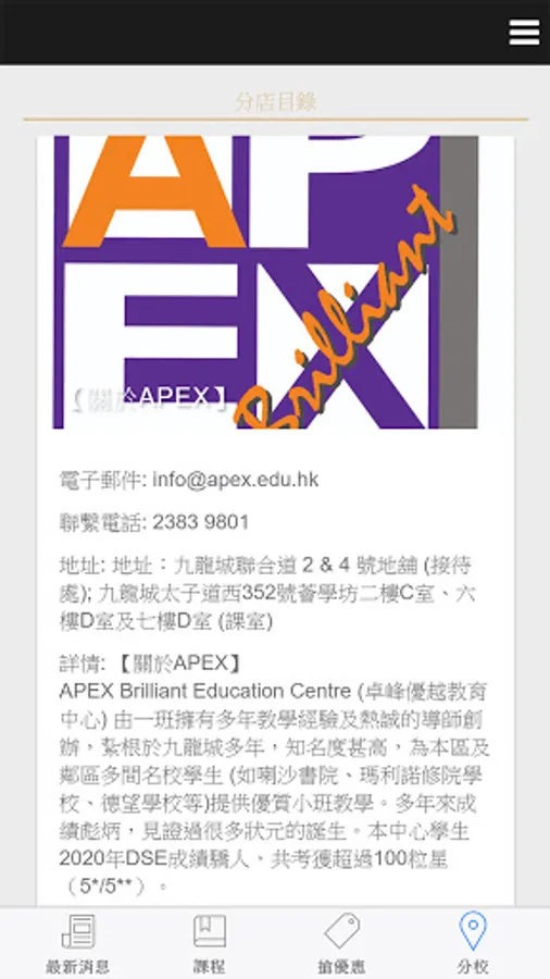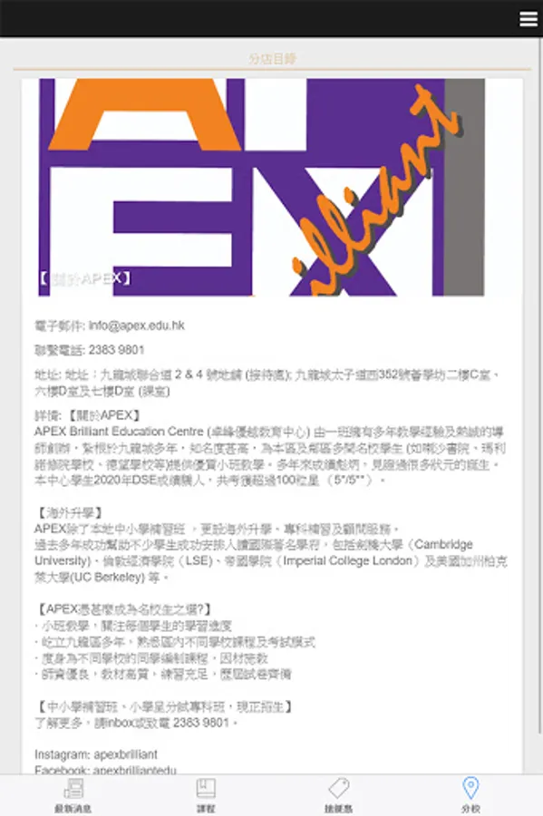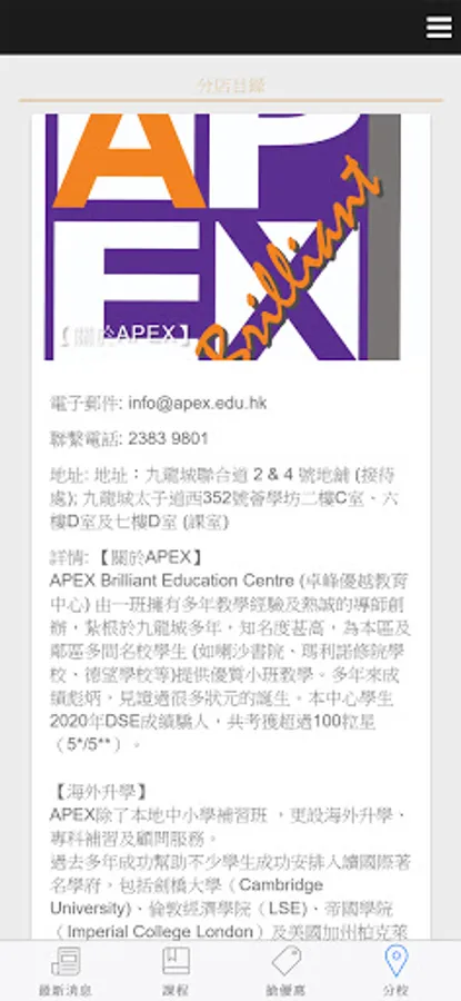 In addition to local primary and secondary school tuition classes, APEX also provides overseas education, specialist tuition and consulting services.