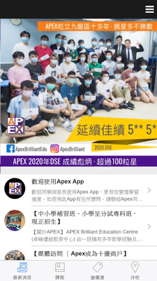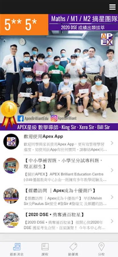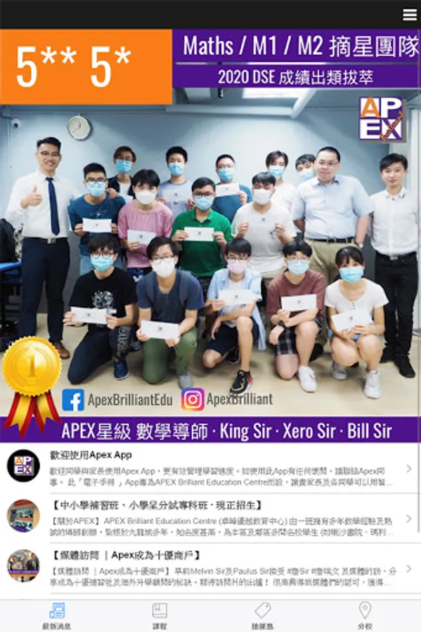 APEX Brilliant Education Centre was founded by a class of teachers with many years of teaching experience and enthusiasm. It has been rooted in Kowloon City for many years. Maryknoll Convent School, Dewang School, etc.) provide high-quality small class teaching. Over the years, the achievements have been shining and have witnessed the birth of many champions. The students of our center have outstanding DSE scores in 2020, with a total of more than 100 stars (5*/5**).