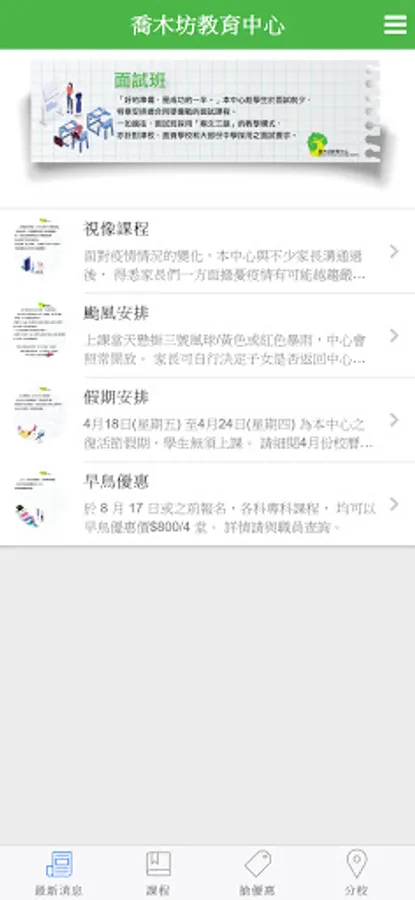 It provides special tuition courses for primary and secondary schools, as well as examination paper drill classes and interview classes.