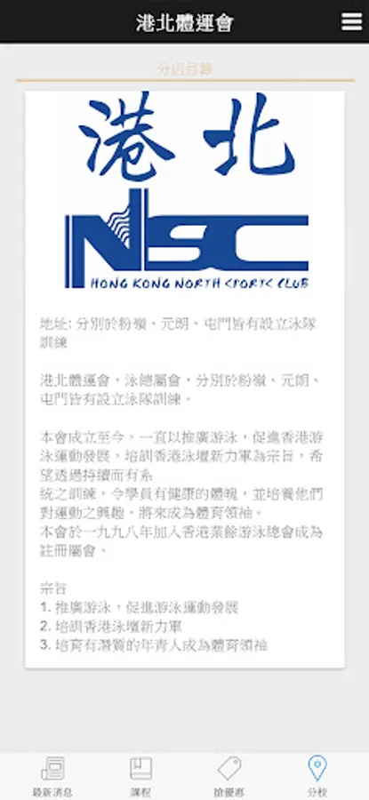 The Hong Kong Sports Club was founded in 1996 and is a registered non-profit organization.