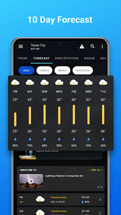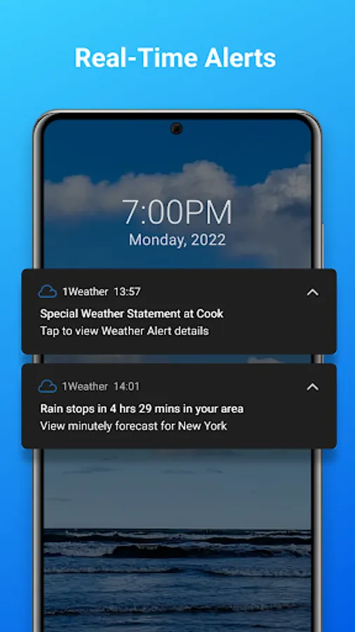 Receive the latest alerts and warnings issued for your city by the National Weather Service (NOAA), Dark Sky & WDT. Immediate notification of real-time wearher changes to keep you & your loved ones safe.