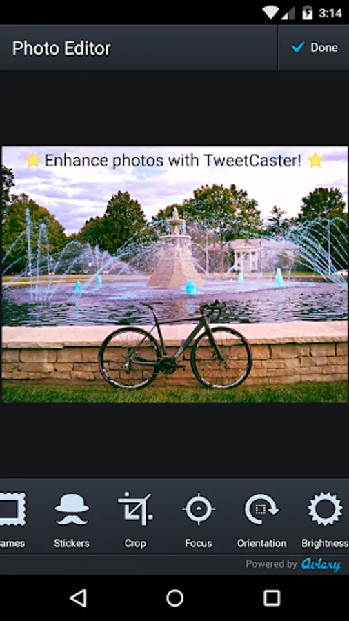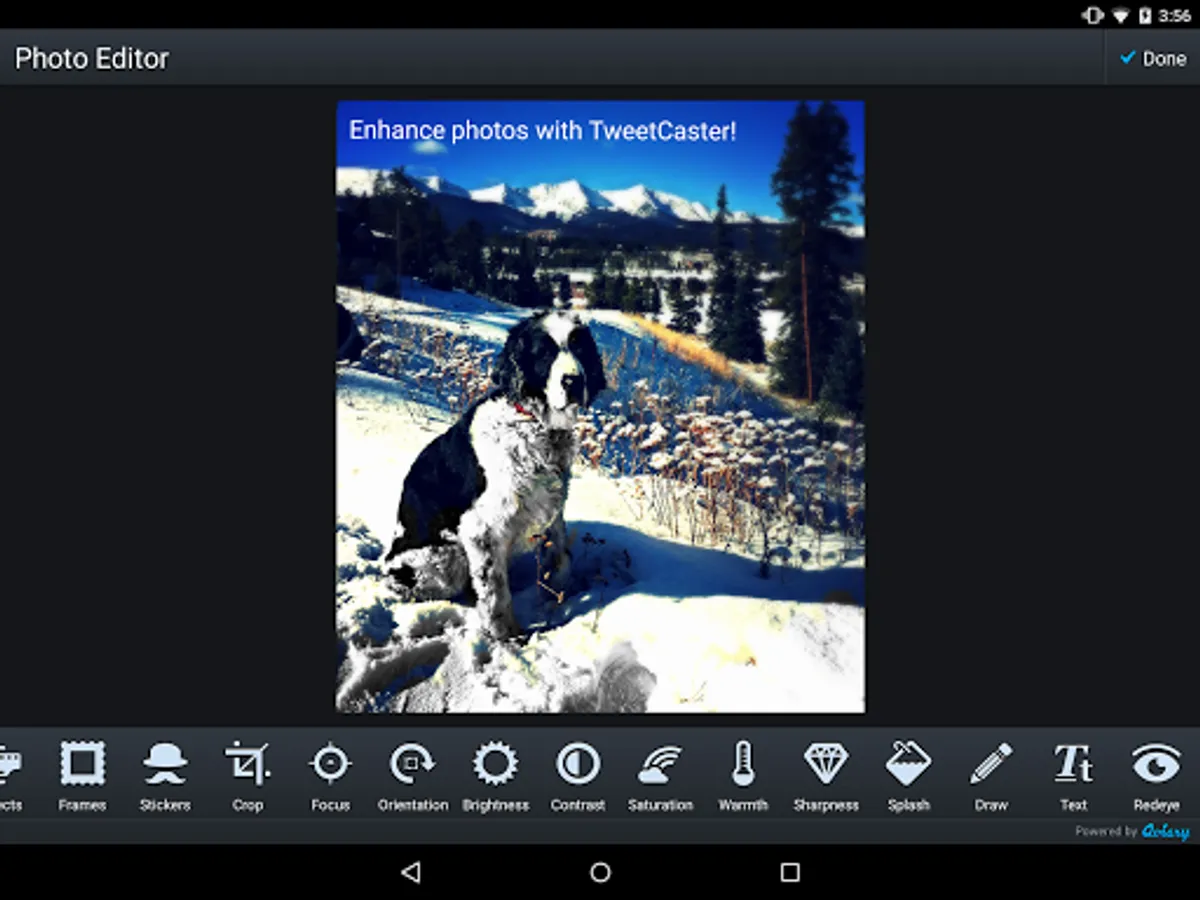 ** NOTE: You must have TweetCaster 8.9 or later installed in order to use this plugin. After taking a photo or selecting a photo you can edit the photo which will launch the plugin with all it's features **