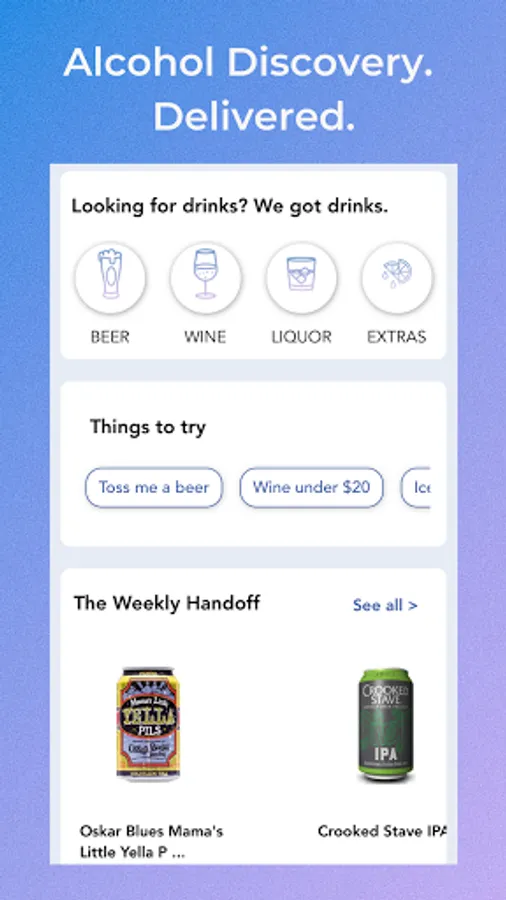 Order your favorite beverages right to your front door in less than 60 minutes.