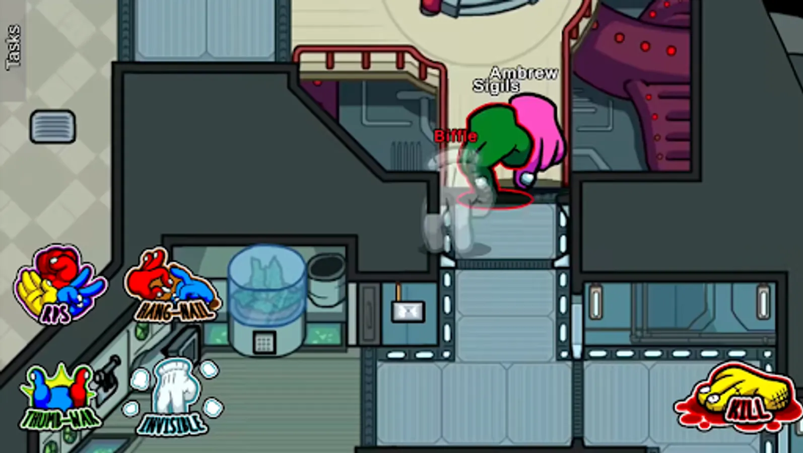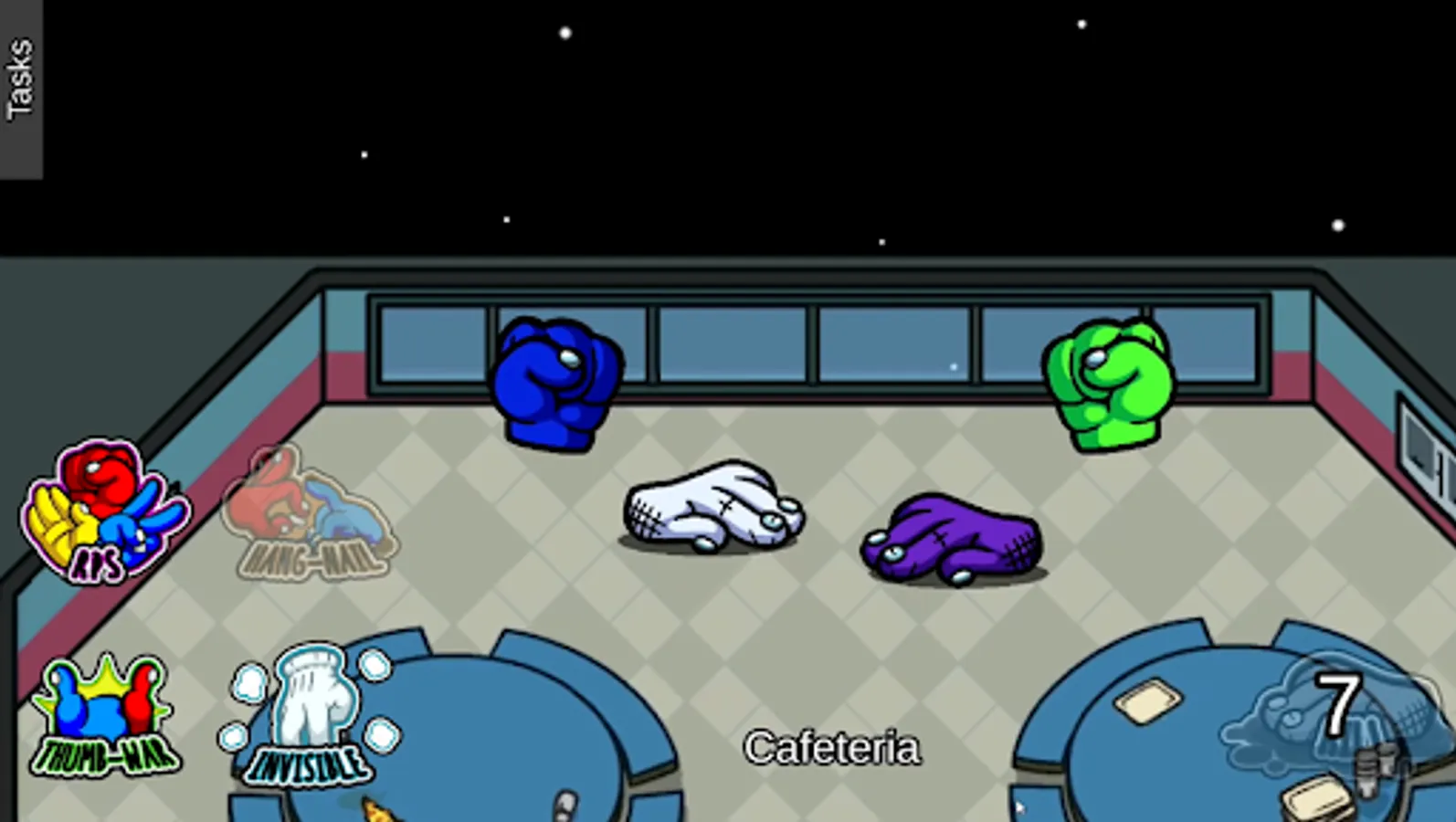If you remember foot among us, now we have a hand among us. What is different from hand among us is that all players use the form of hand and this makes the game fresher. In Hands among us there will still be people who become imposter. If you become an imposter, you can use some power. You can become invisible and kill crewmates by means of hang-nail, thumb-war and rock paper stone. Special rock paper stone and thumb-war if the crewmates win, they won't die so they still have 50:50 to survive.