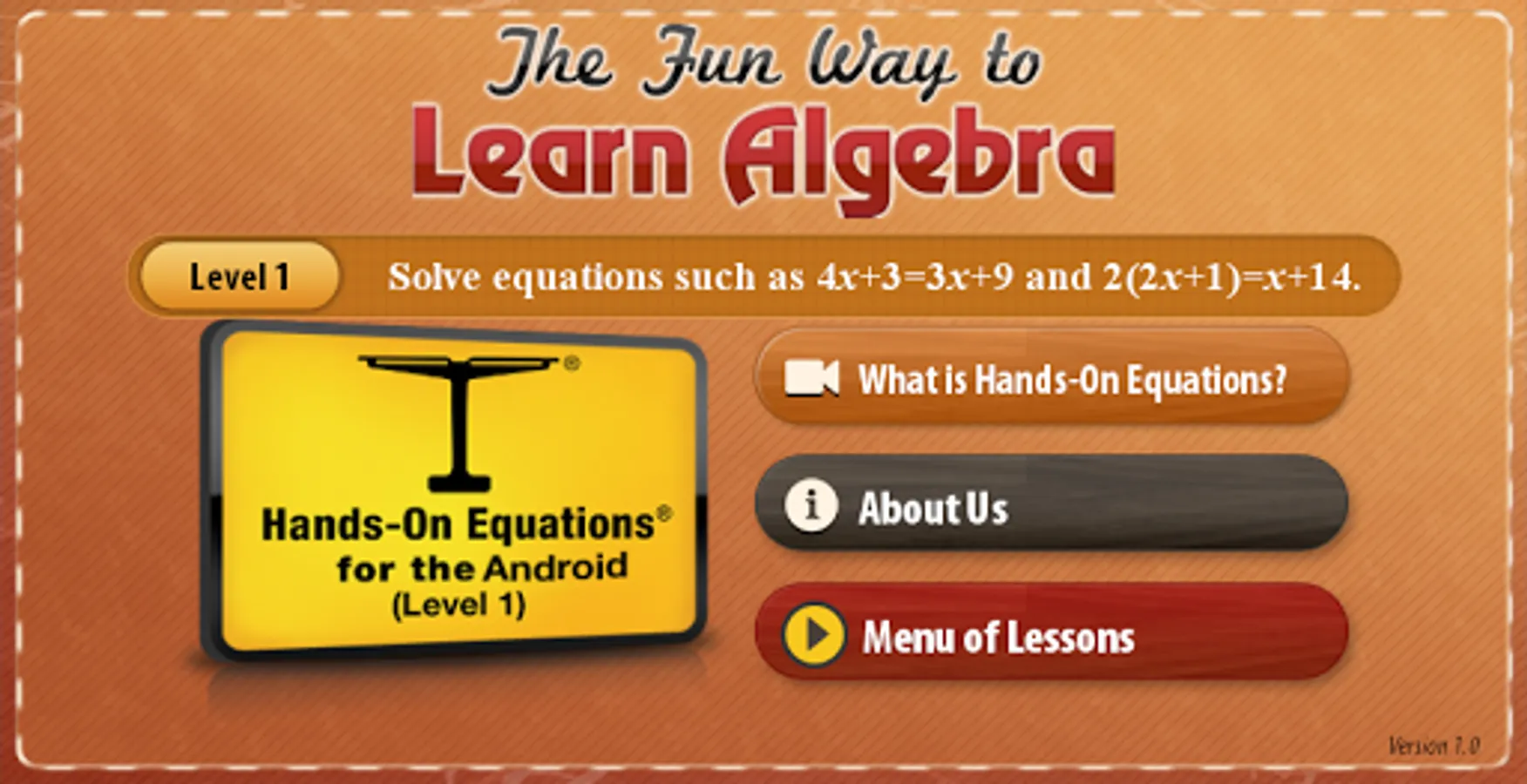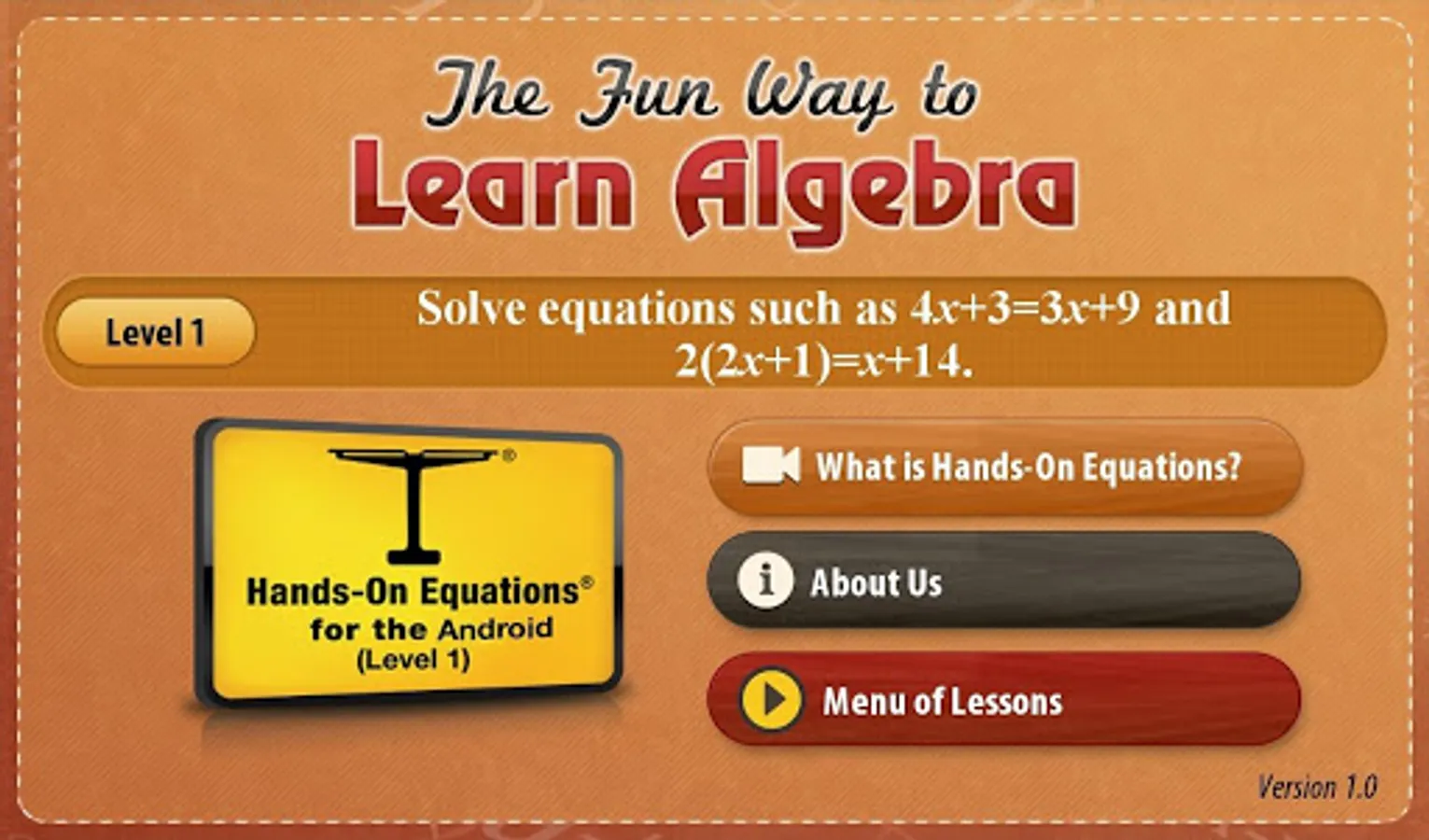 Teach your children the joys of learning algebra with Hands-On Equations 1 – the algebra app for children as young as eight and for adults of all ages!