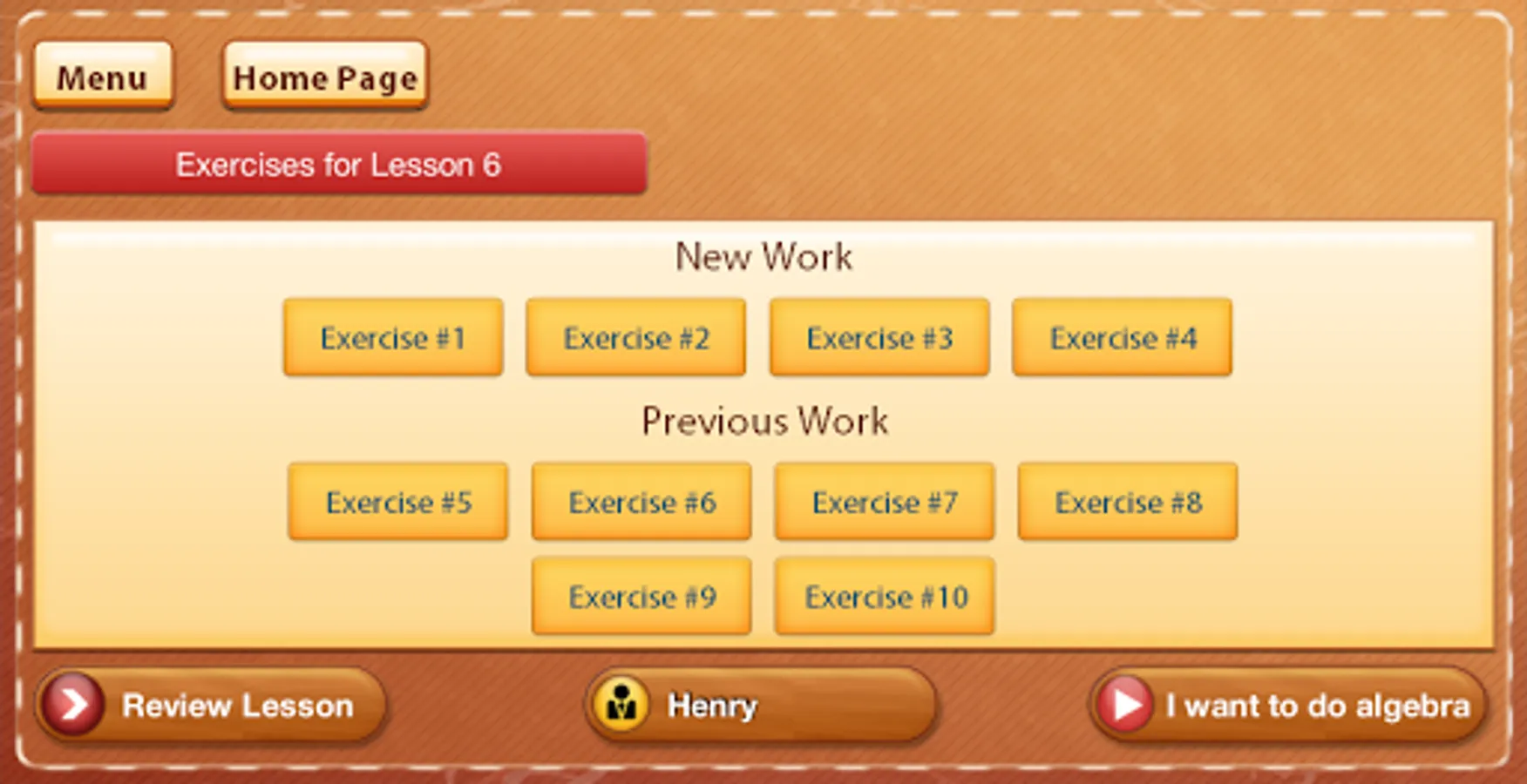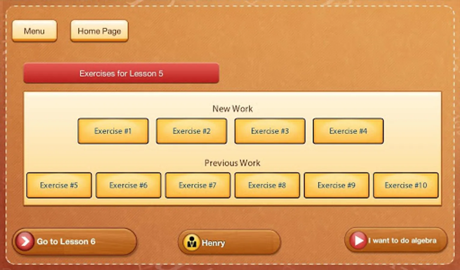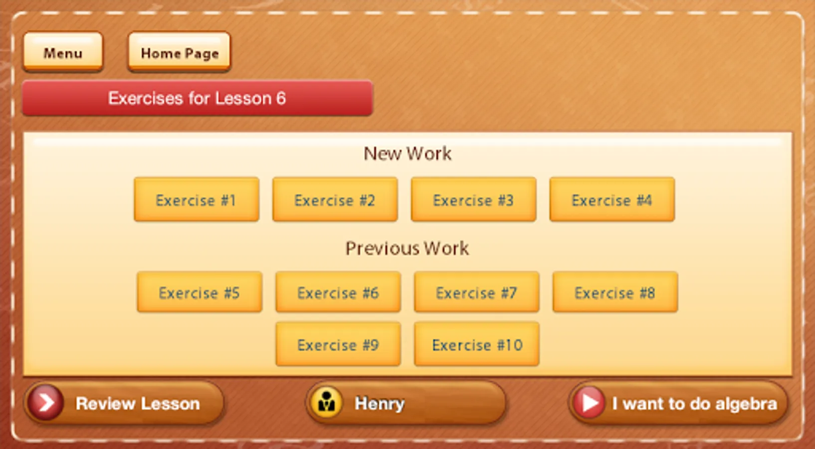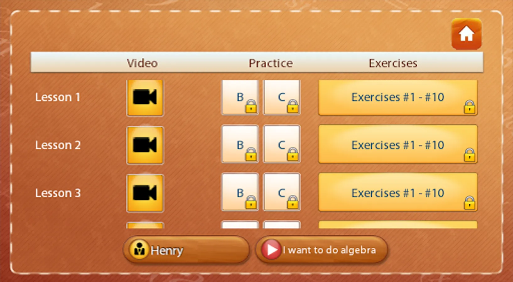 • Success with the two practice problems enables the app user to access the ten lesson exercises.