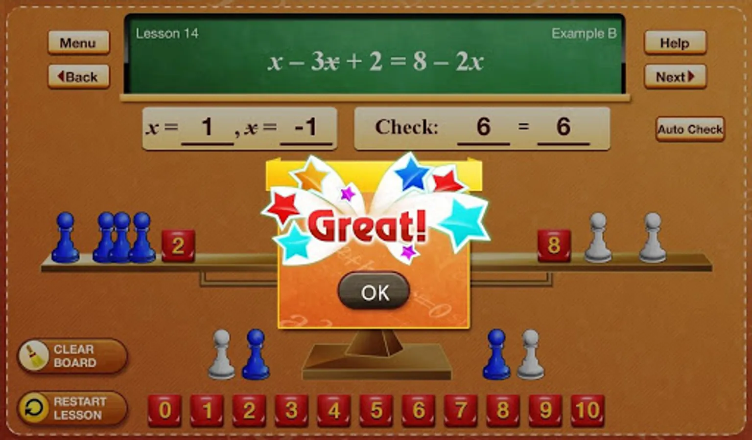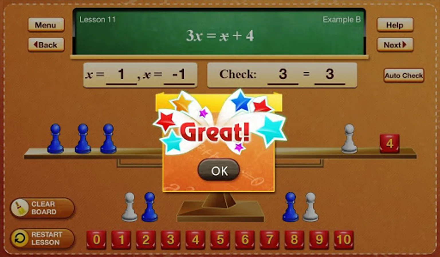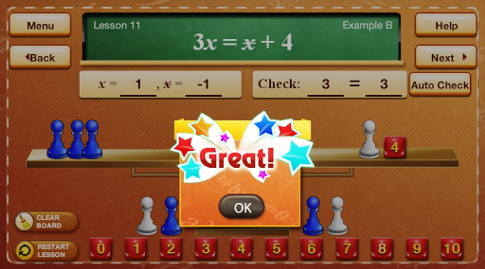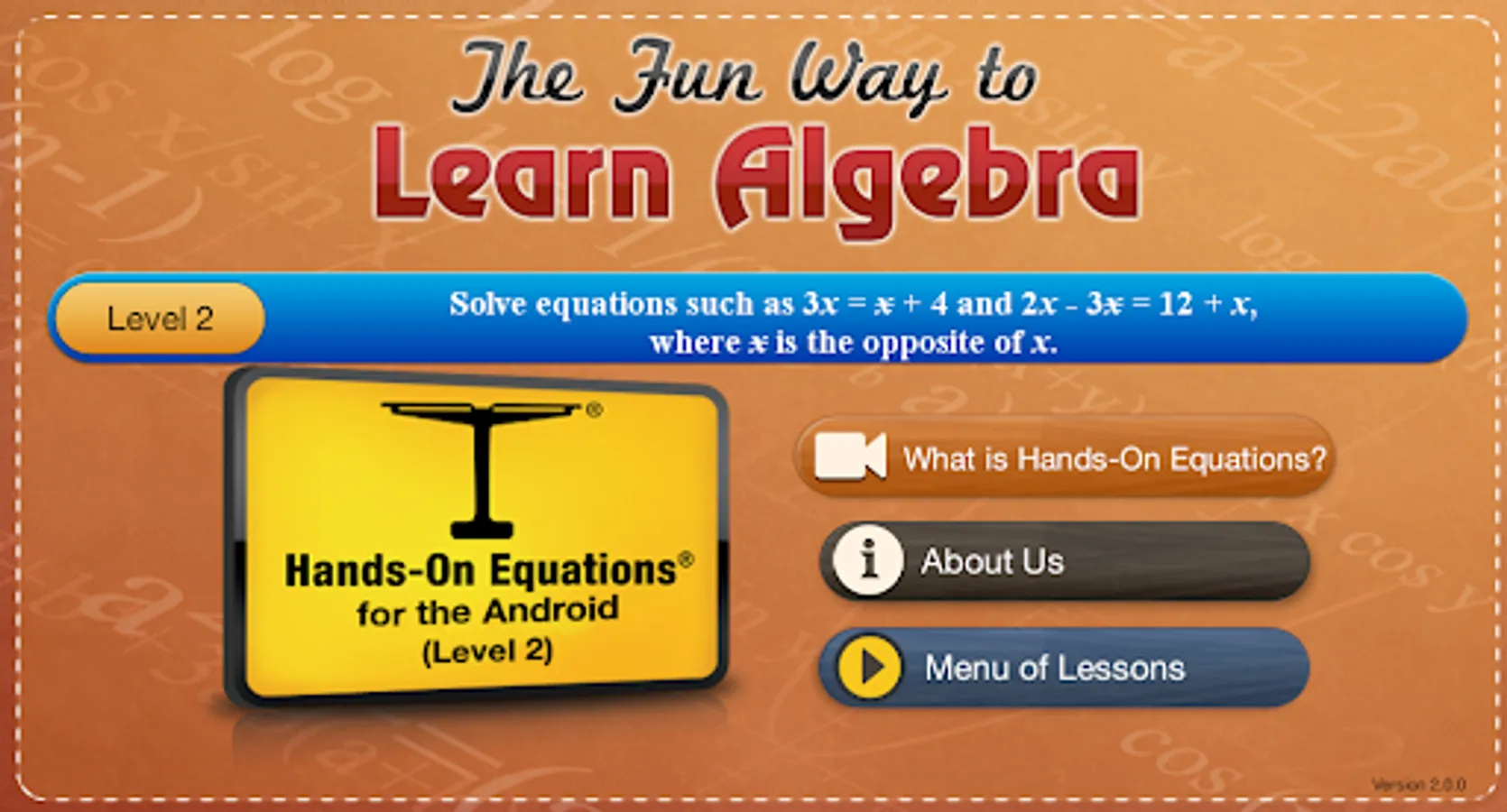 This app is intended for students who have already completed Level 1 of Hands-On Equations.