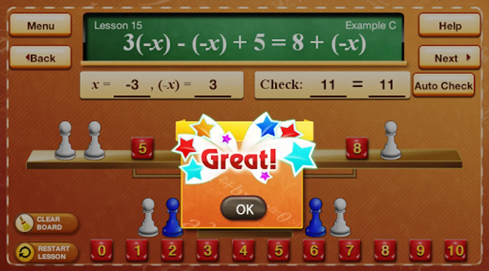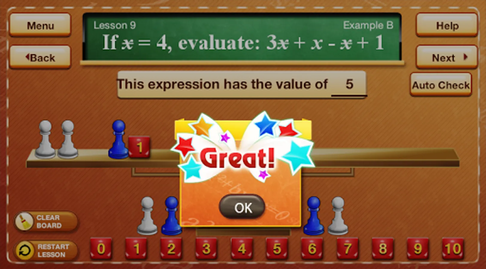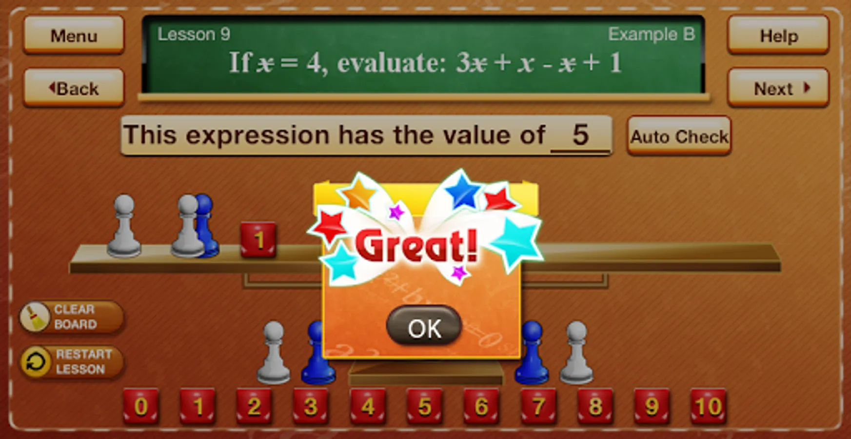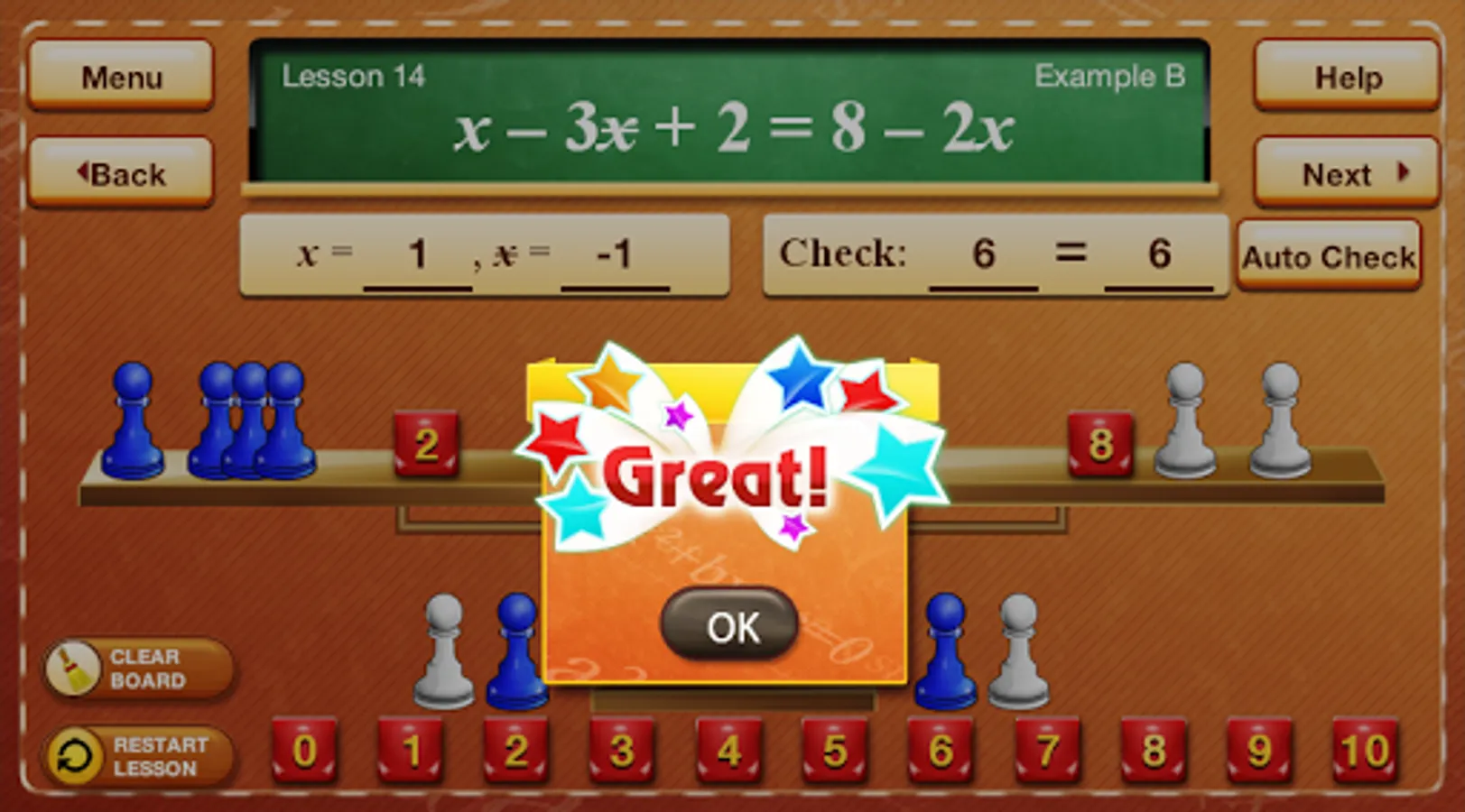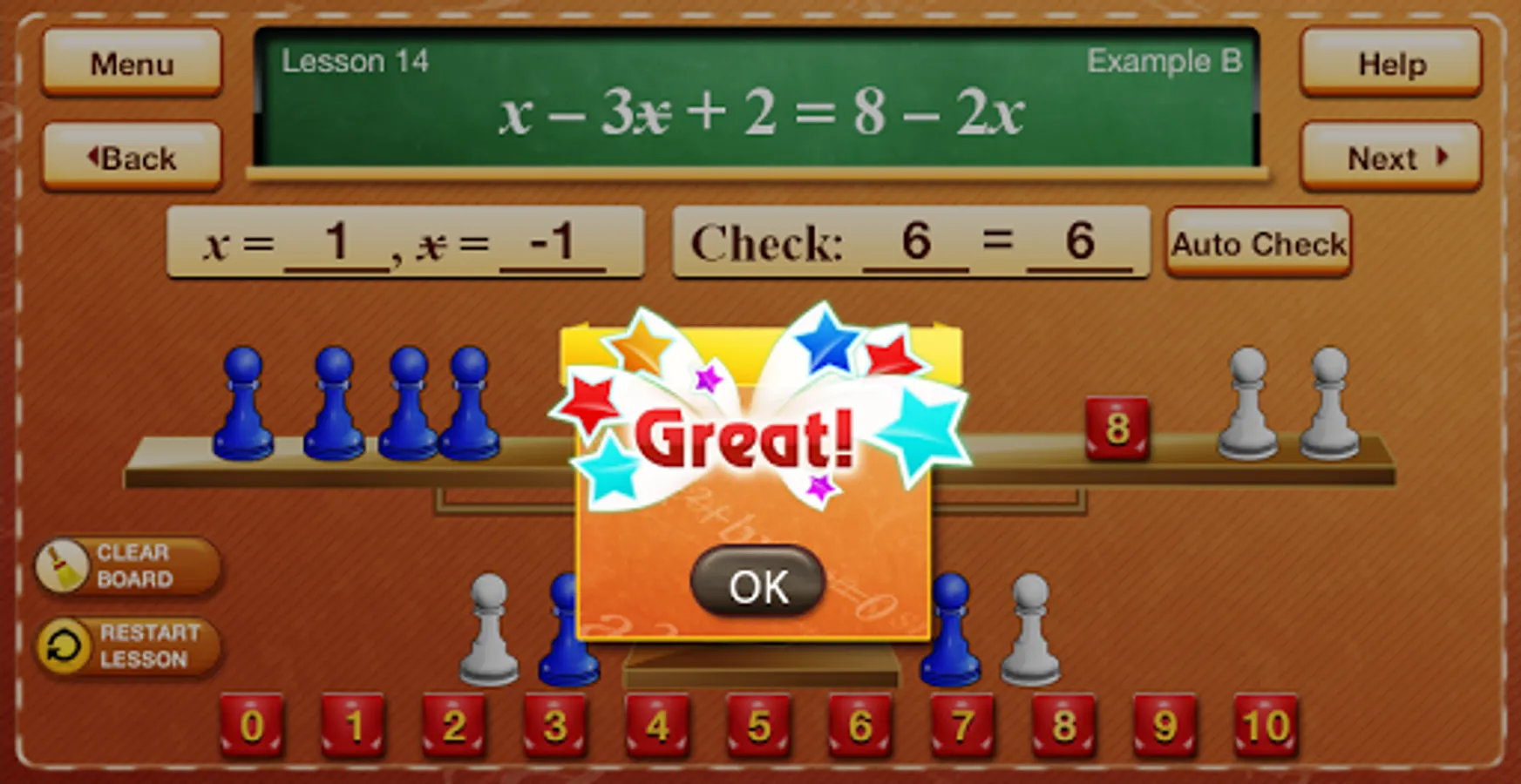 This app is intended for students who have already completed Level 1 of Hands-On Equations.