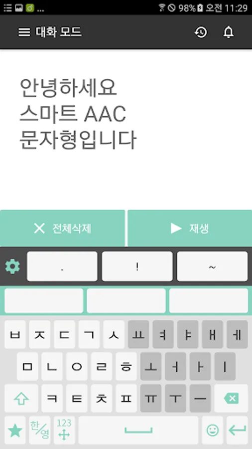 Smart AAC has Smart AAC picture type, Smart AAC text type, Smart AAC keyboard, Smart AAC symbol making app, and can be selectively used according to the user's language ability.