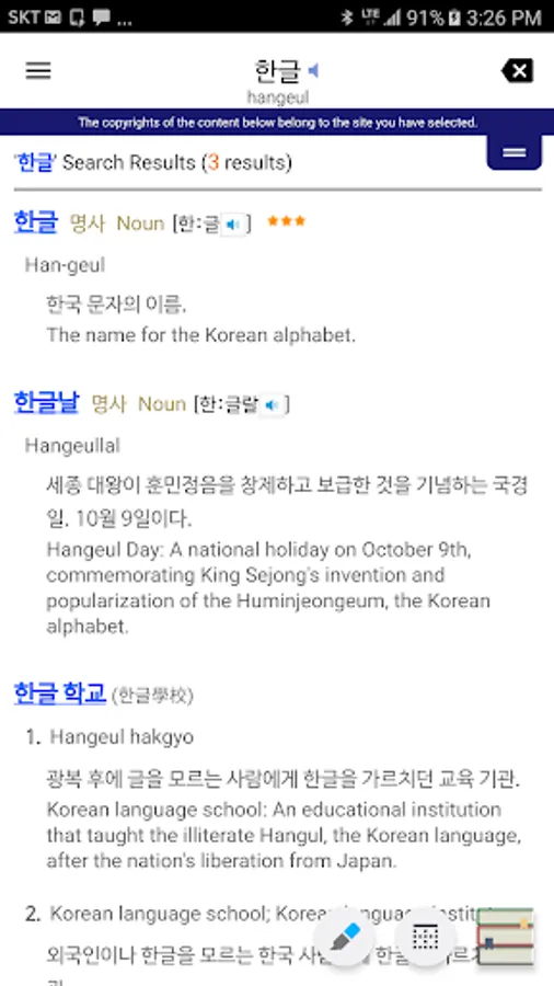 ● If you enter a sentence, it will be translated (displayed at the bottom of the dictionary).