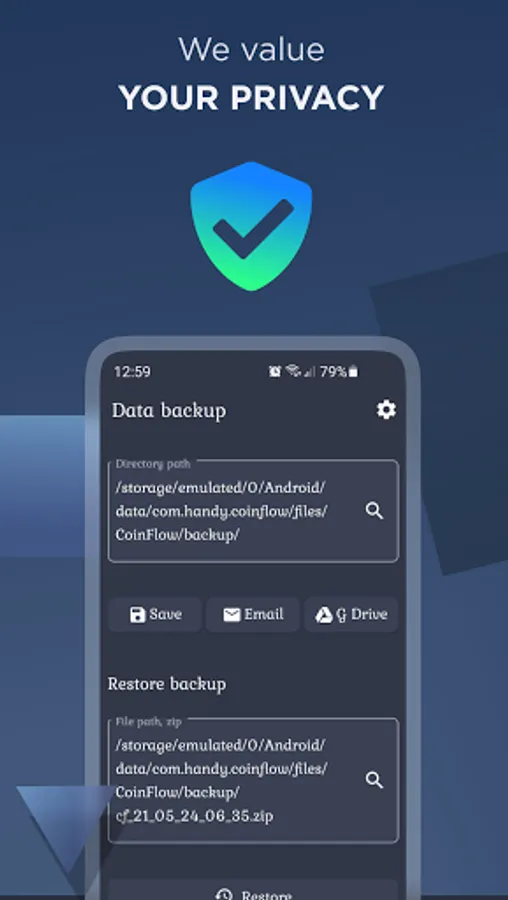 No ads. No online registration. No third-party servers. All your data only on your devices and your Google Cloud space.