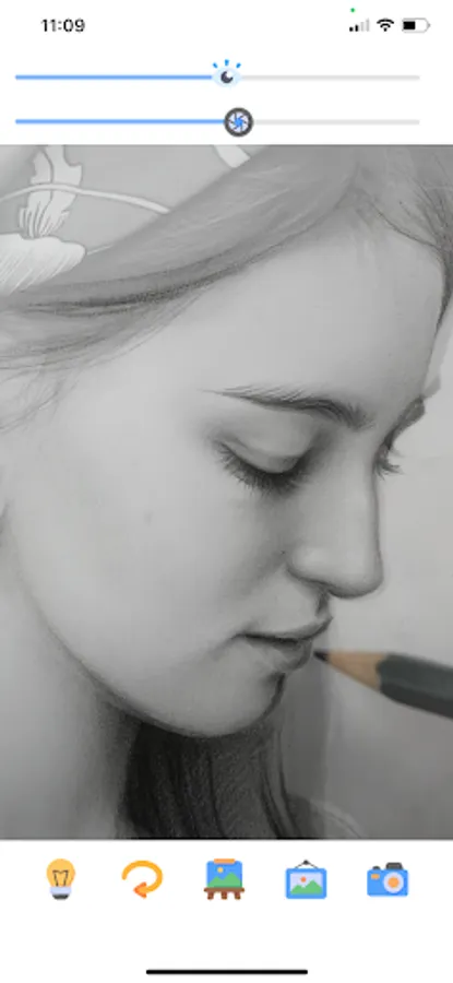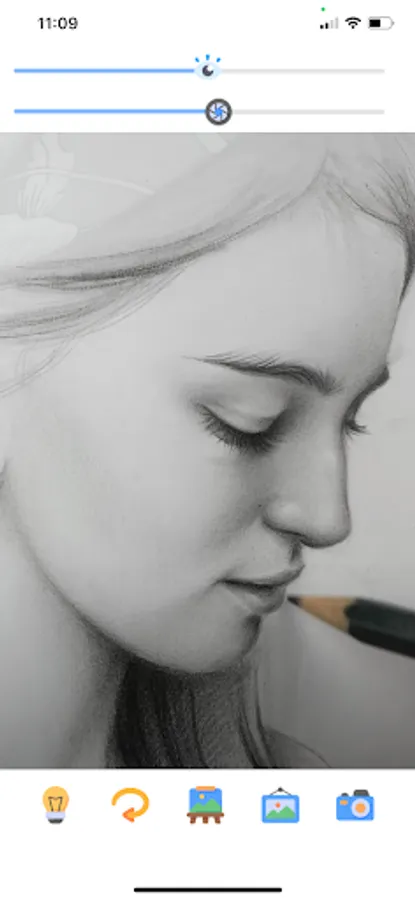 Just select an image on screen, place a blank paper in front of the mobile and start tracing.