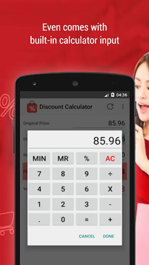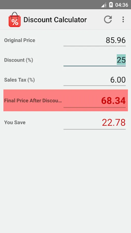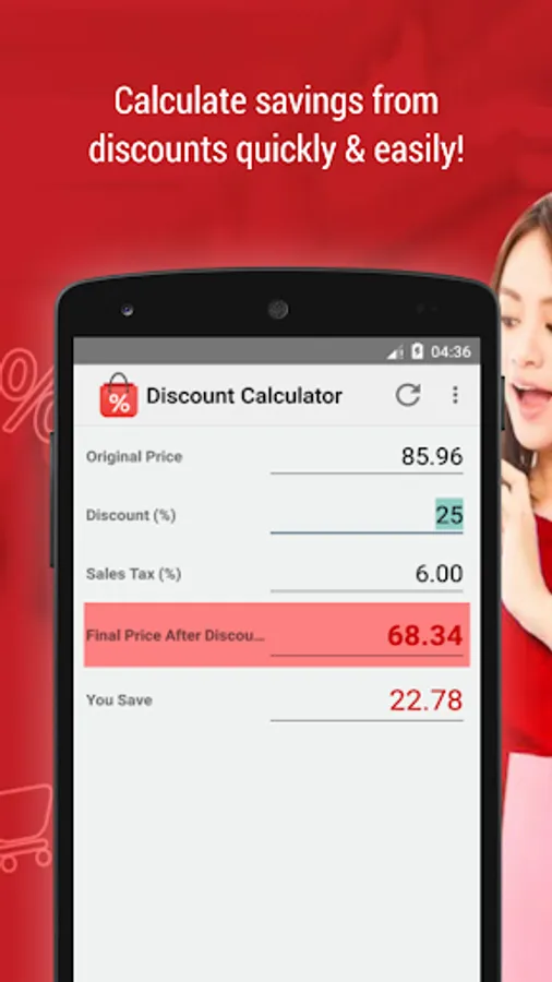 Discount Calculator is a useful shopping app that helps you calculate the price after discount for an item on sale.