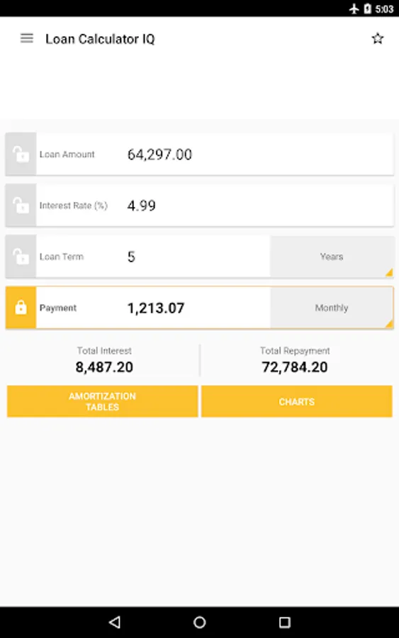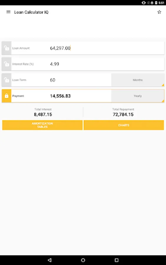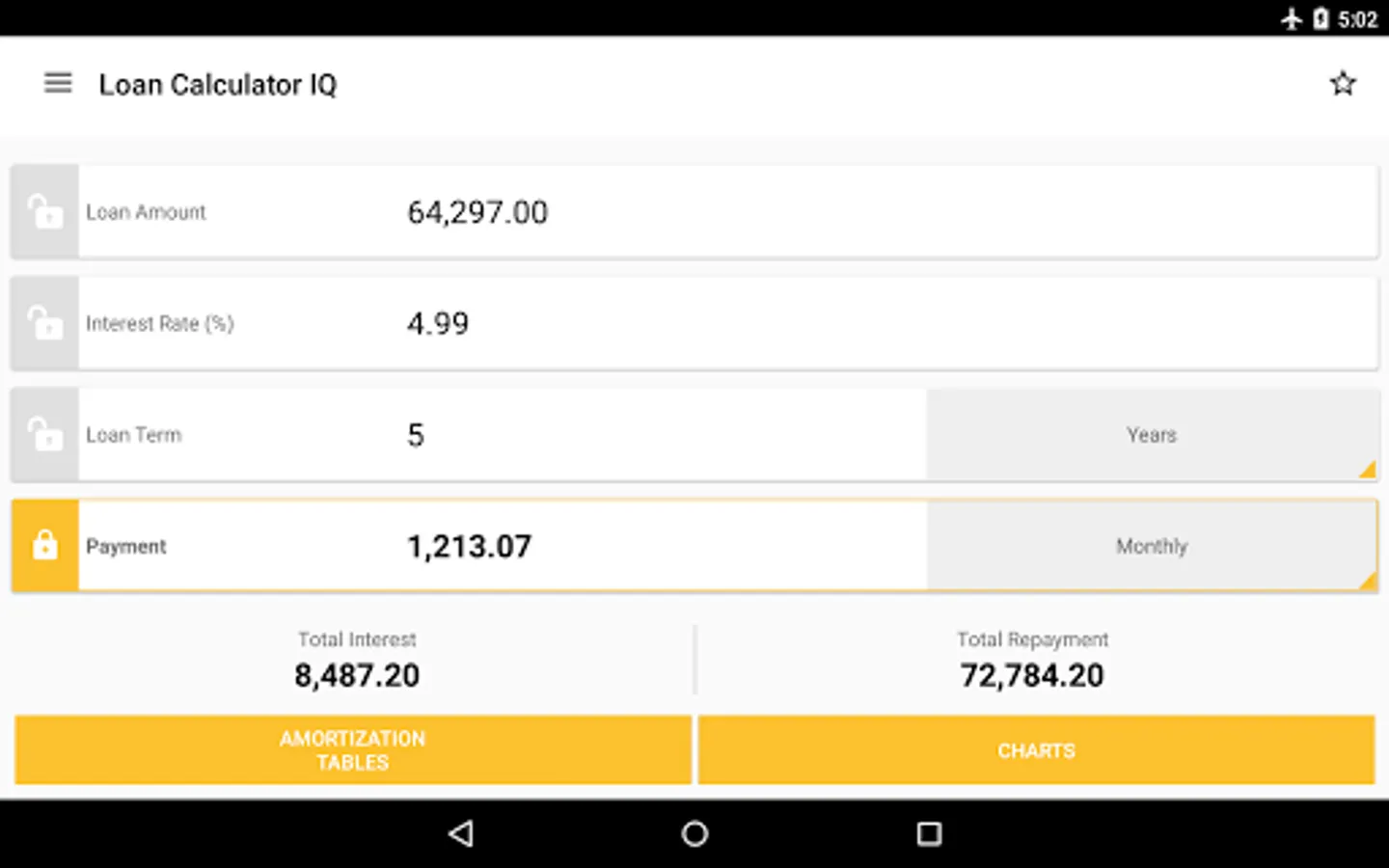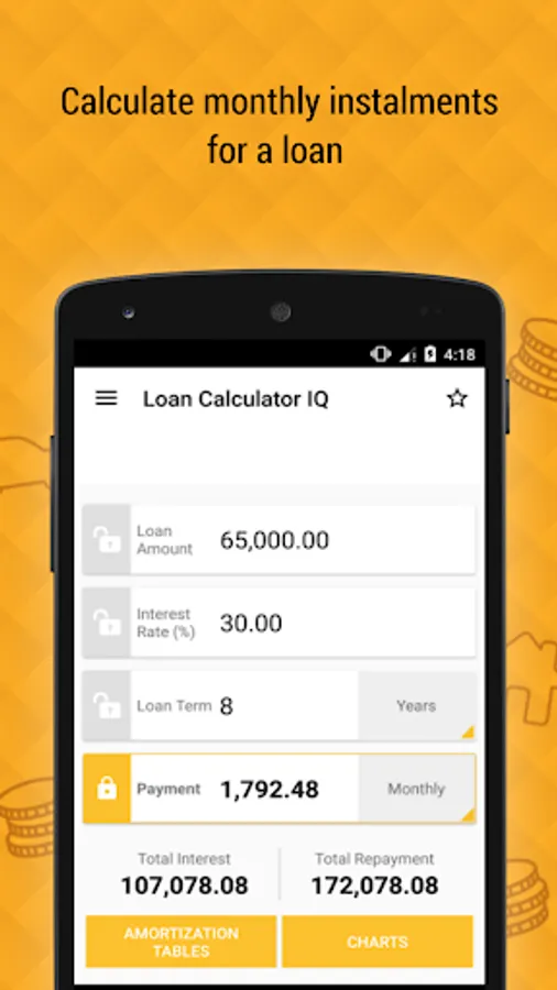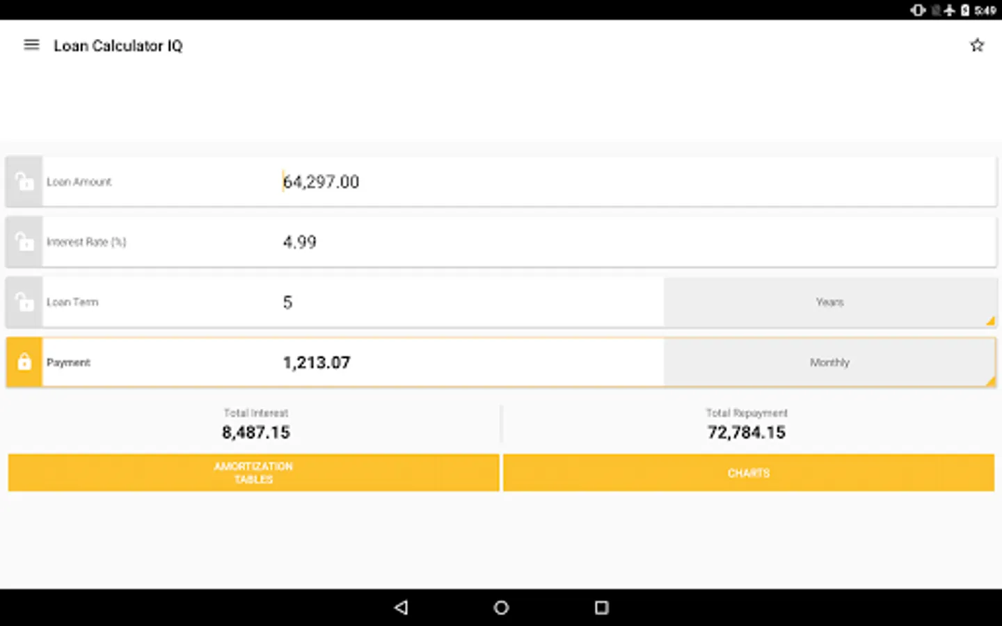 Loan Calculator IQ is useful for anyone who wishes to take up a mortgage from the bank, an auto loan to purchase a car or simply loan money to a friend.