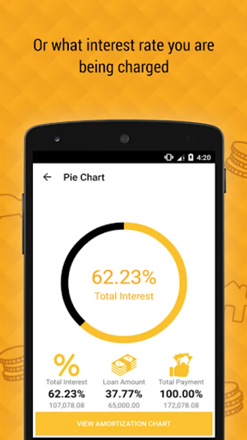 You can also generate a pie chart that shows you your total interest & loan amount as a percentage of your total repayment