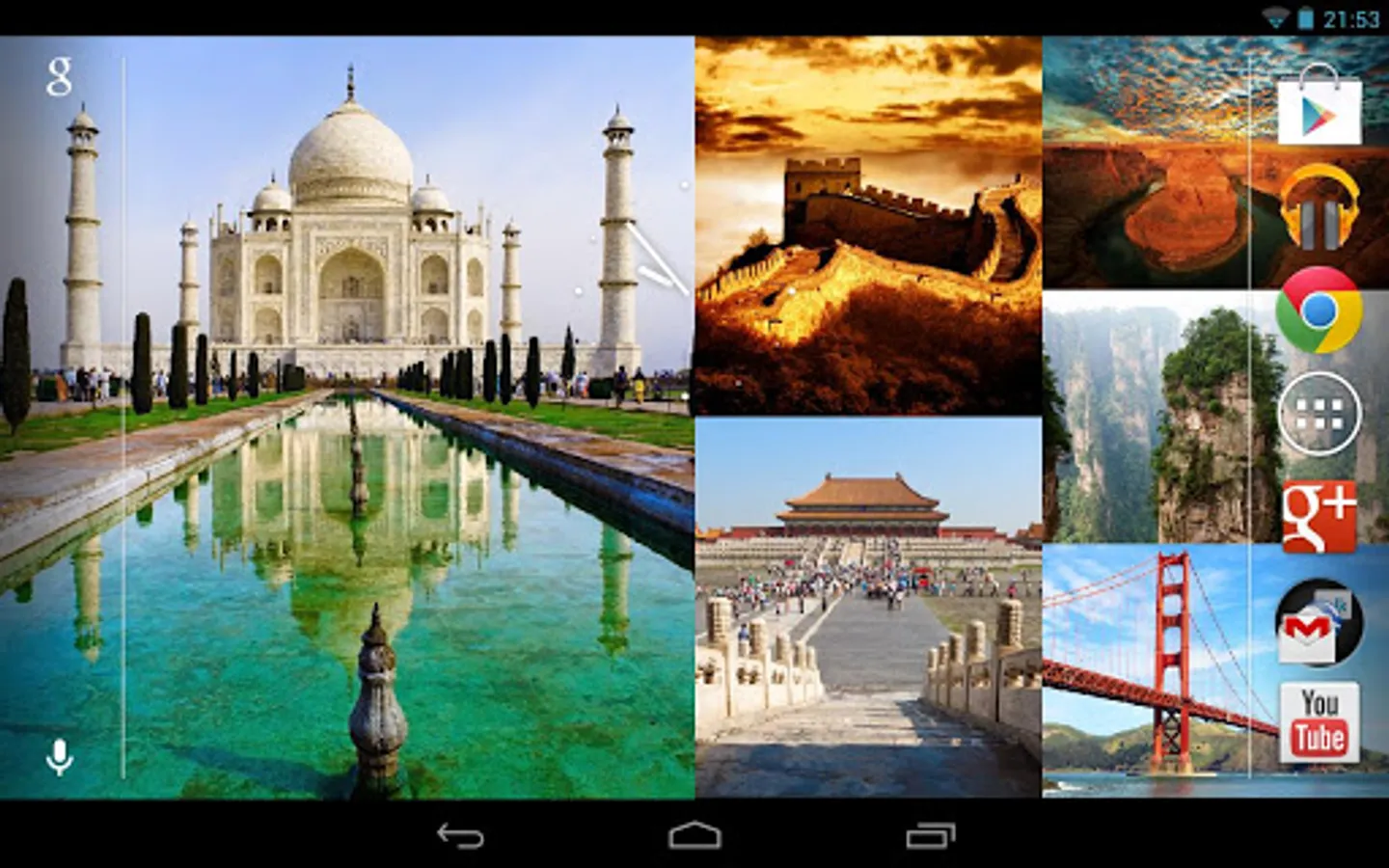 Photo Wall FX Live Wallpaper shows your photos in a beautiful live wallpaper collage with several layout styles to choose from. Add entire albums and folders, apply gorgeous photo effects to customize the live wallpaper to your liking. Make your personal Live Wallpaper in seconds!