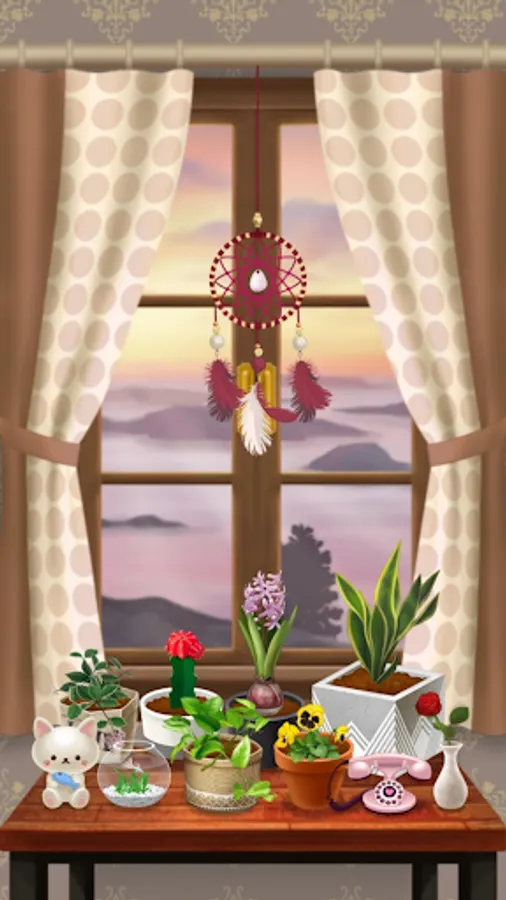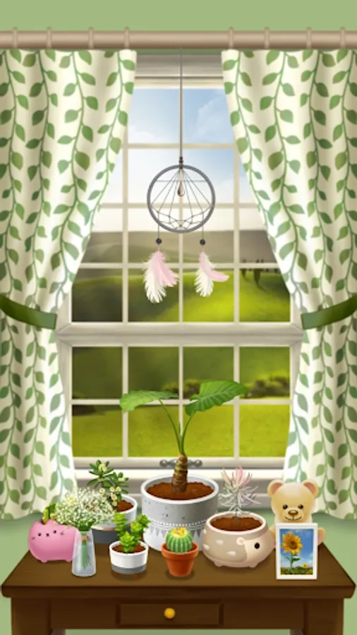 It would be nice to put your worries down for a while and relax looking at the flowerpots by the window.