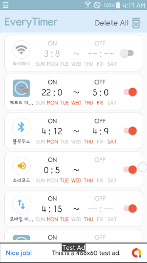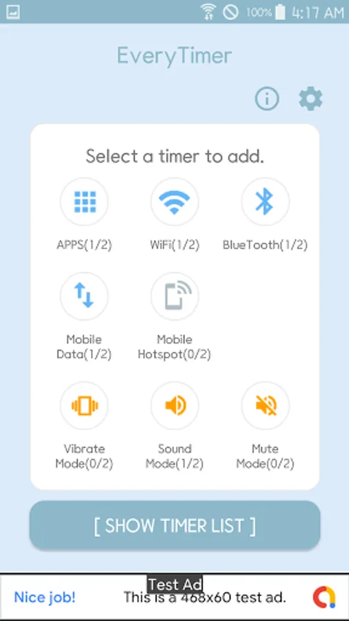 This app is an alarm timer with App, WiFi, Bluetooth, network, and automatic mode settings.