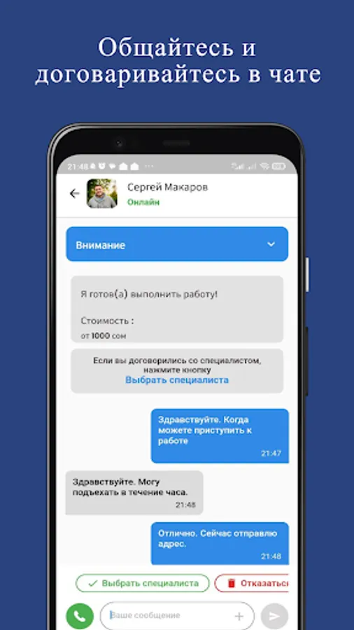 В заказах есть чат с клиентом. Чтобы найти работу и получить заказ, нужно заинтересовать клиента, договориться об условиях работы.