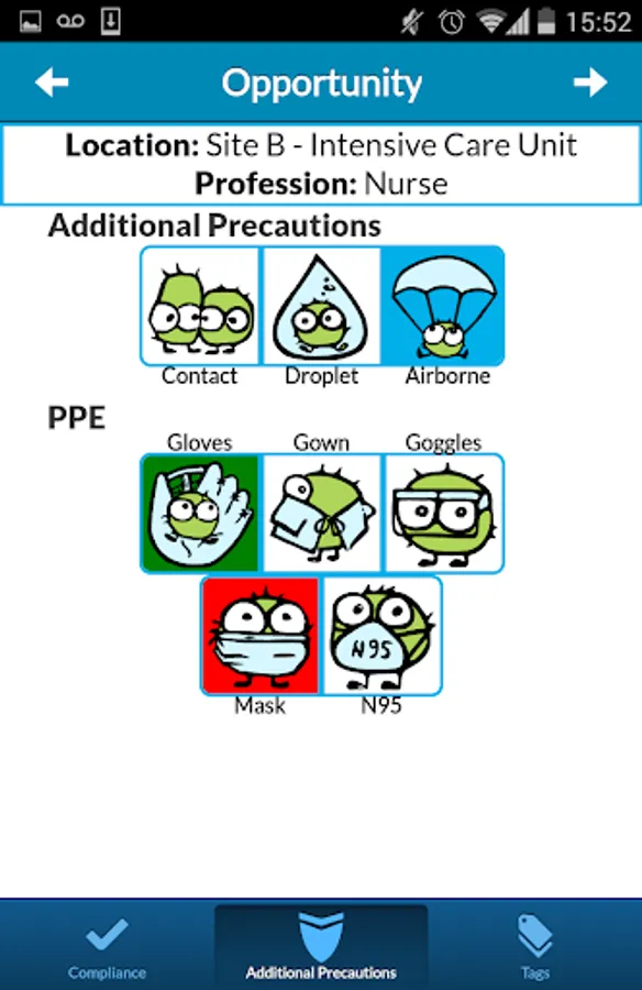 * Independently capture additional precautions and personal protective equipment (PPE) compliance