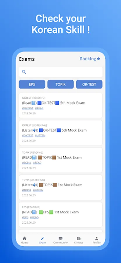 Test your Korean proficiency by solving the expected hit questions of the Korean test (EPS, TOPIK, OK-TEST).