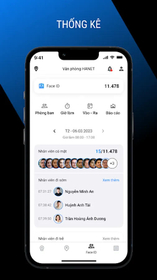 - Employee management, timekeeping, scheduling, attendance statistics.