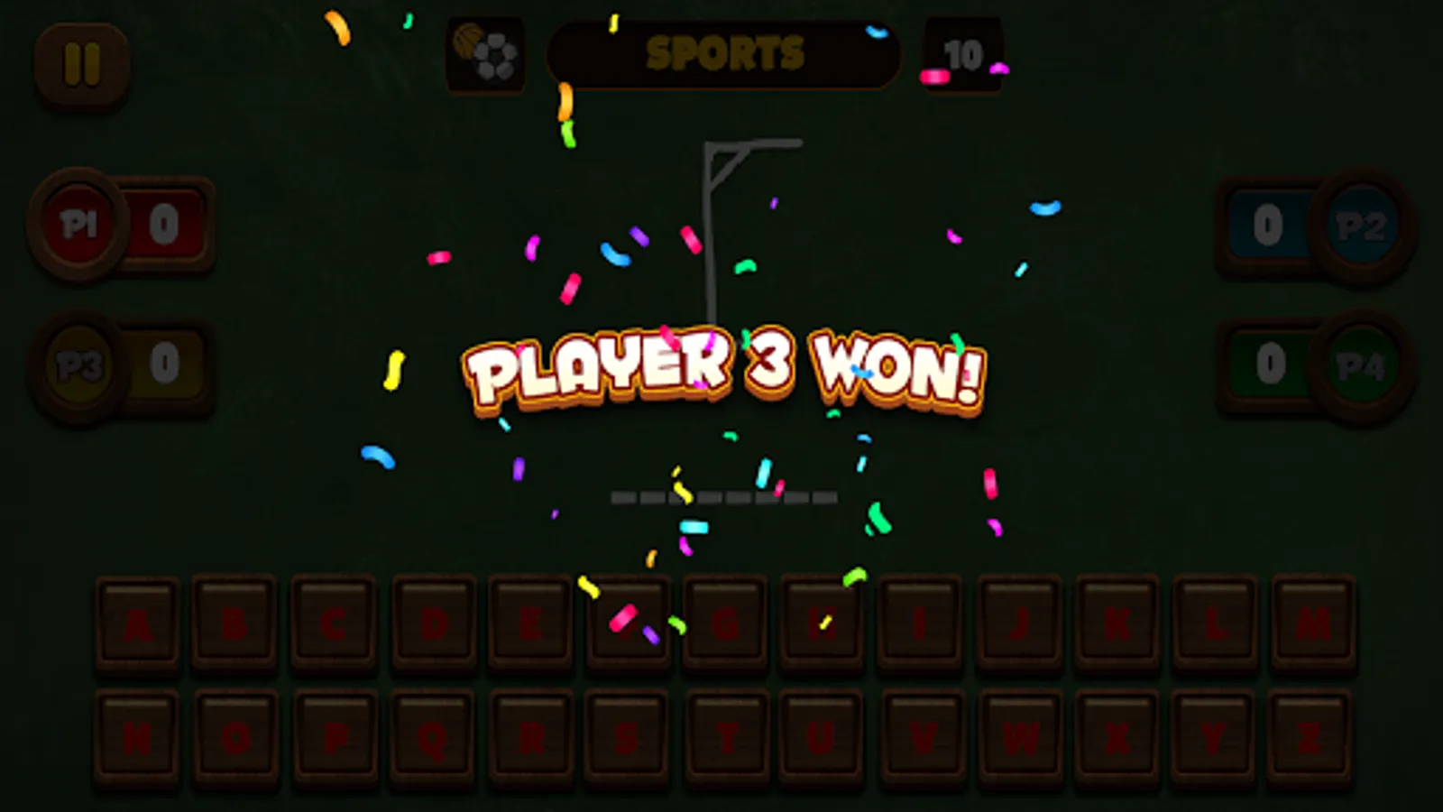 Play against the CPU in 1 Player or against your friends in 2-3-4 player game modes. If you know a letter, you go ahead and have to try to guess the word. Knowing the most words, you must beat your opponents.