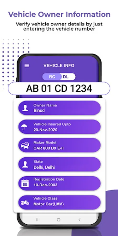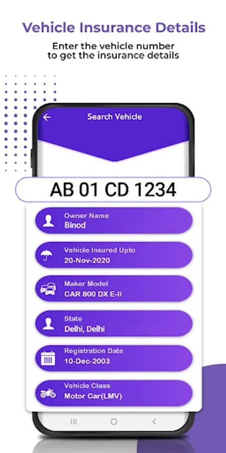 Our app helps you to find vehicle owner details within seconds. Check vehicle insurance details, vehicle registration details and vehicle resale value. Our app lets you check the RTO vehicle owner details of an already registered vehicle using the vehicle number.