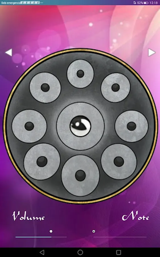 (EN) - Turn your mobile device or tablet into a real Hang. With nine high-quality sounds and four funds to choose from. Relax with his mystical music. Volume control and tone control