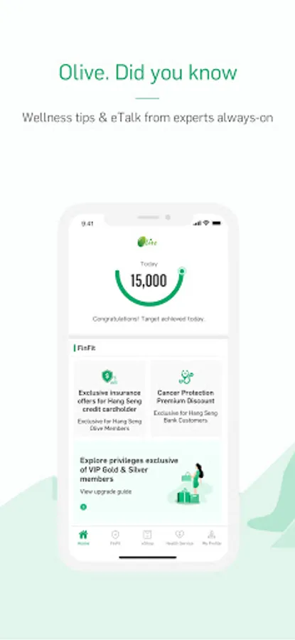 All-new Hang Seng Olive Wellness App – a wellness platform to help you achieve wellness management, let you unlock health information, health services and rewards all in one place.