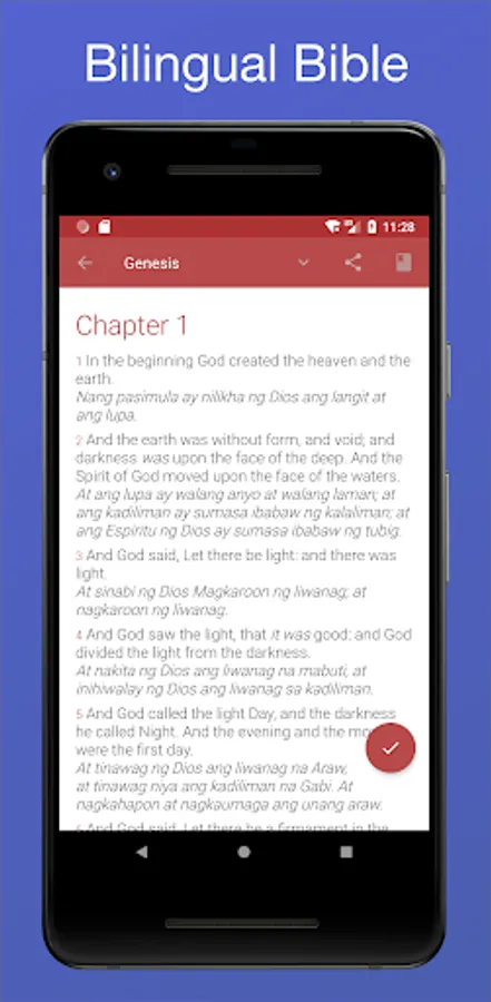 English-Tagalog Bible gives you fast searching & browsing of the King James version (KJV) and the Ang Bibliya version of the Bible.