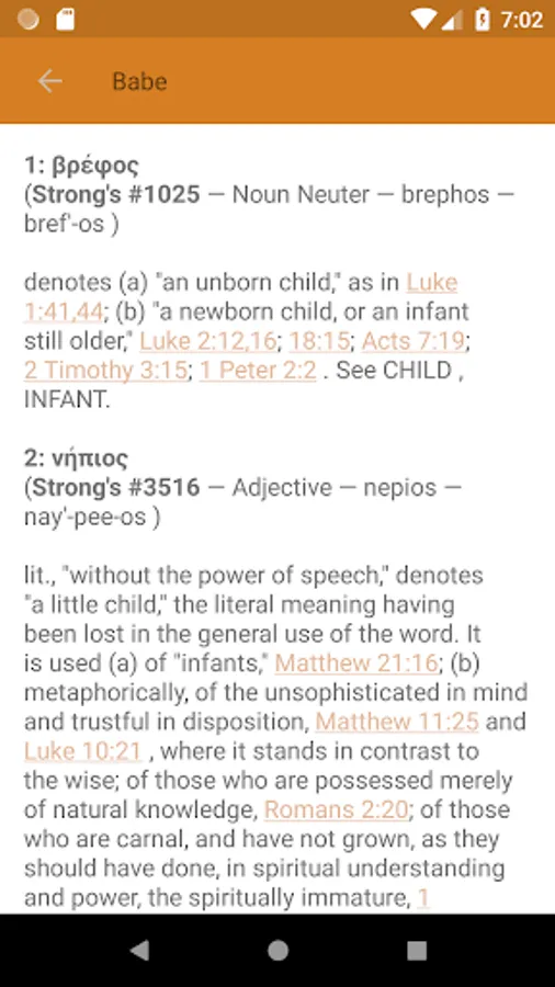 Feature of Vine's Expository Bible Dictionary app