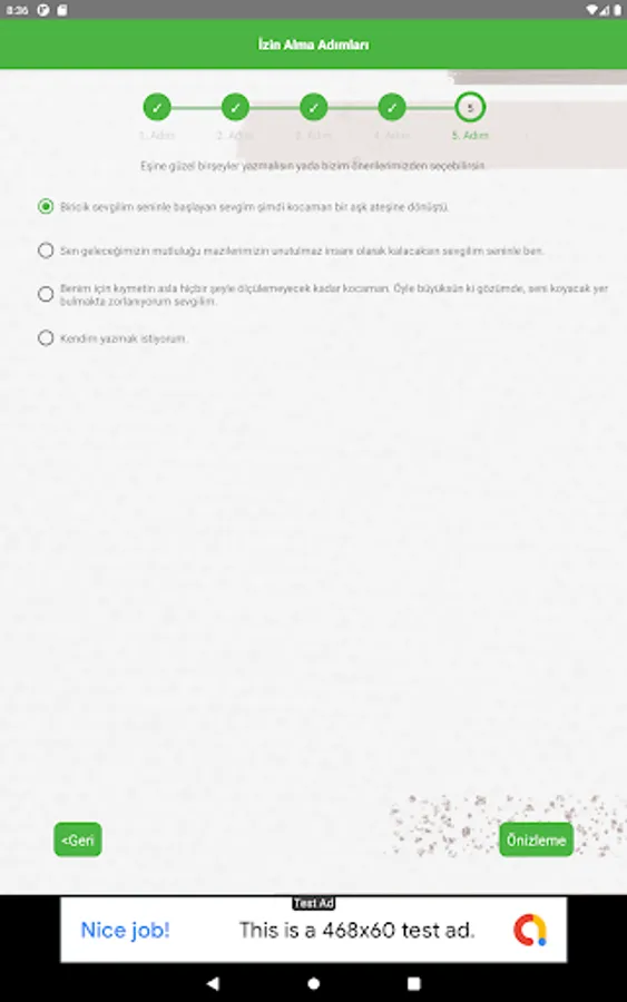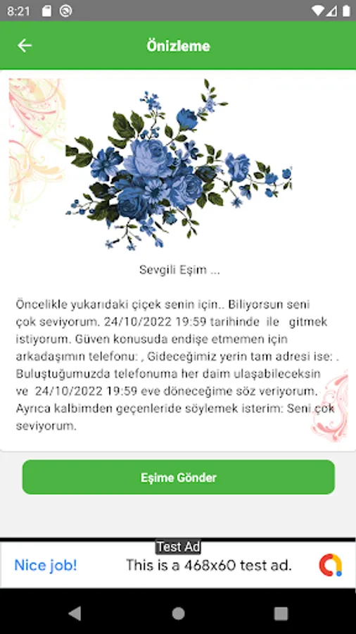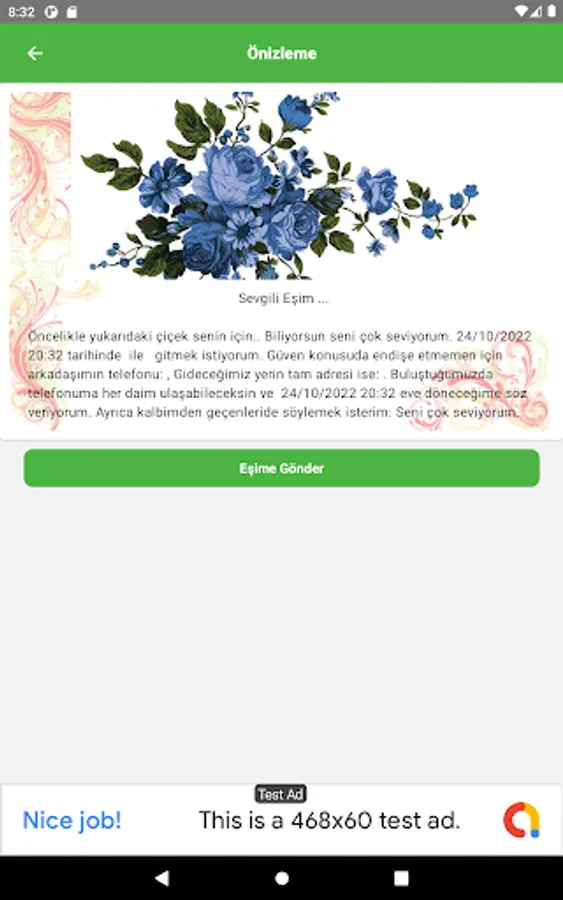You don't have to try so hard to get permission from your spouse anymore. With this application, you will be able to make your spouse happy and you will be able to go wherever you want. It should not be forgotten that it is an application made for humorous purposes. love your wife :)