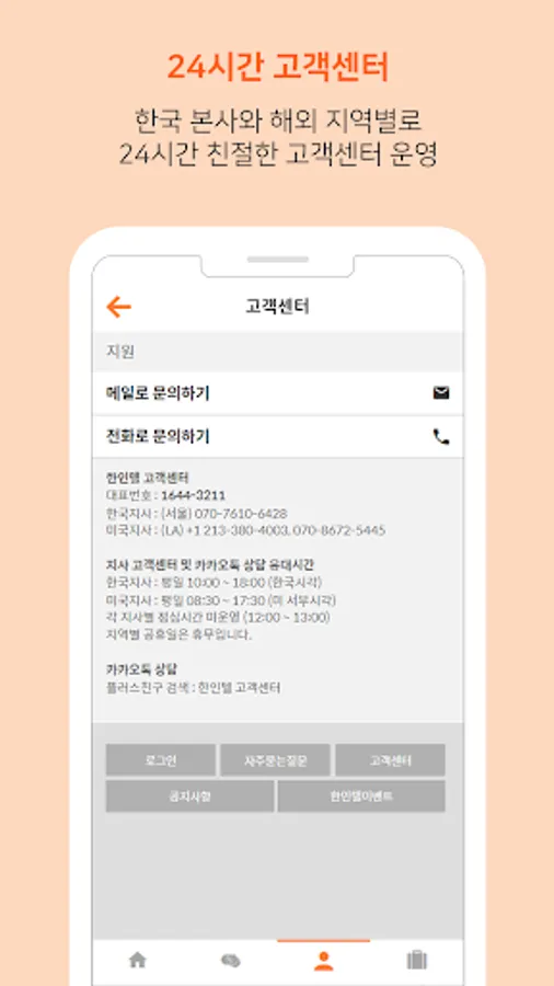 - Operation of head office in Korea and overseas branches, 24-hour customer service