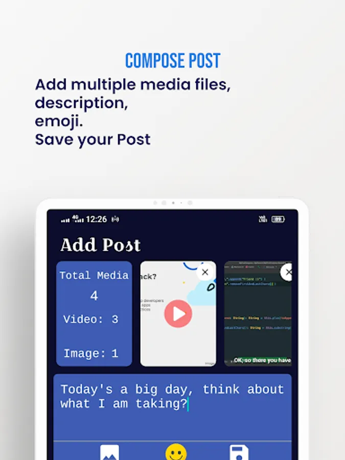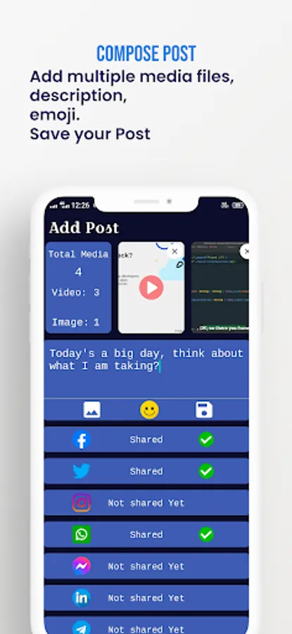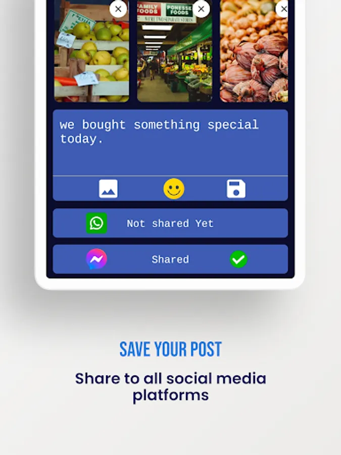 > Post text, images, gifs, videos, and more to all platforms on a single tap.