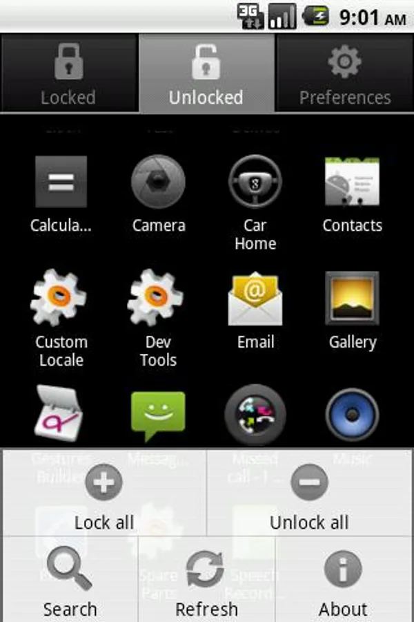 ◈ Search : App name search is easy unlock(lock) in the locked(unlocked) tab.