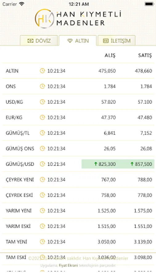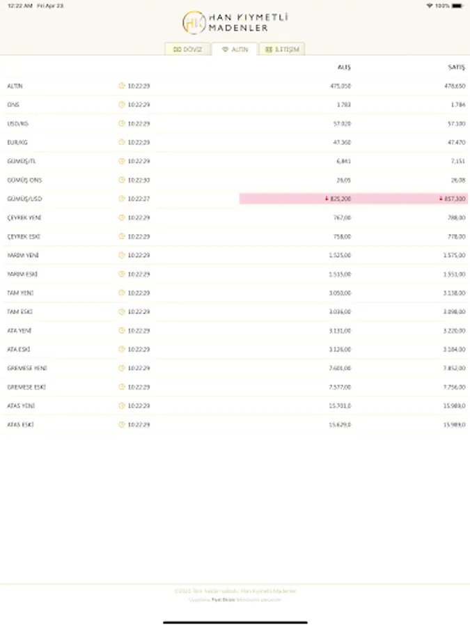 You can follow Han Kıymetli Madenler instant currency gold prices with this application.
