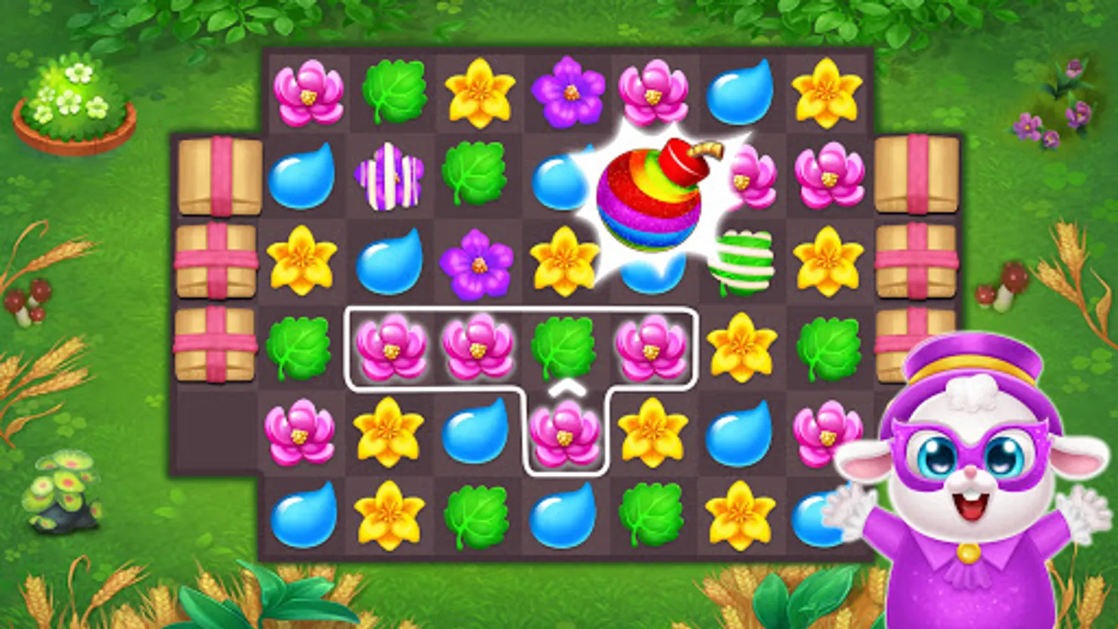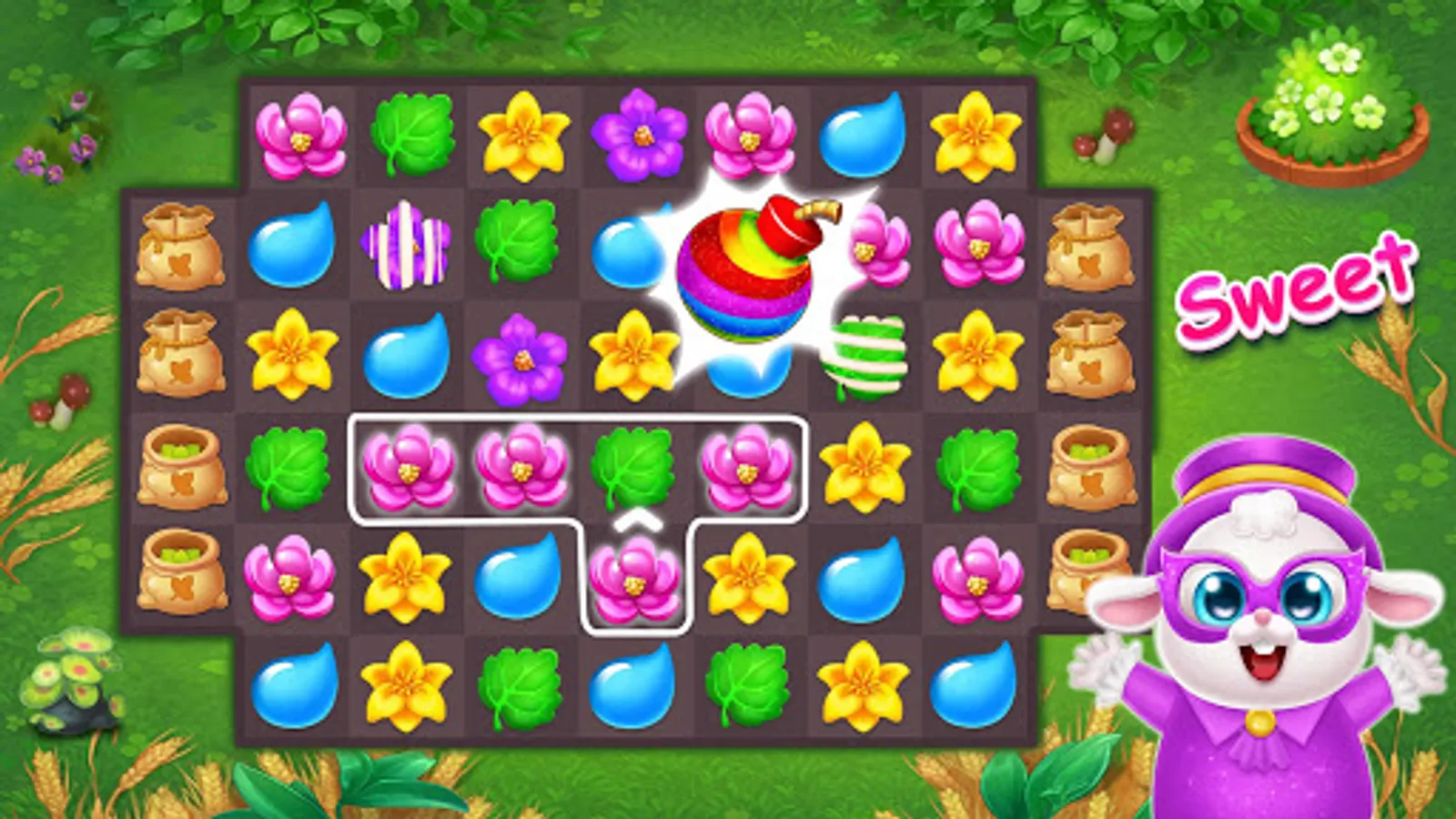 Blossom Frozen : Flower Mania- have sweet adventure blast game on the flower Kingdom! Swap and match various cute Christmas themed candy puzzle pieces, sugar filled Gingerbread men, beautiful bells and Purple stars. Play your way through 700+ levels of holiday themed swap and matching puzzle goodness!