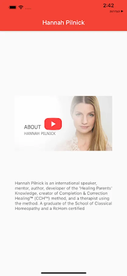 Hannah's proficiency in seeing past experiences of human beings and experiencing them as if they happen today enables her to discover the source of people's suffering and correct it. By doing so, Hannah was able to heal people in severe physical, mental and emotional situations. Through thousands of observations on different life situation, Hannah discovered and learned the secrets of healing. Hannah organized all her knowledge and named it the "Healing Parents" Knowledge; a subset of the knowledge concerning mothers was named Transformothers®. She shares the knowledge through books, audio CDs, lectures and seminars.