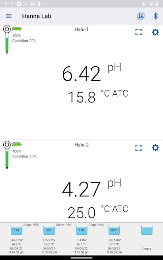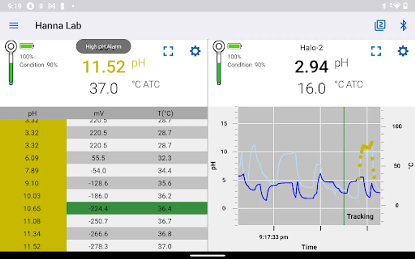 - Sample tagging with annotations by pressing the HALO pH probe button, or by pressing the probe icon on your Android device
