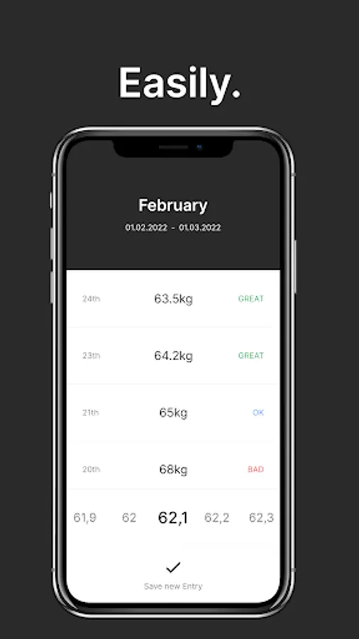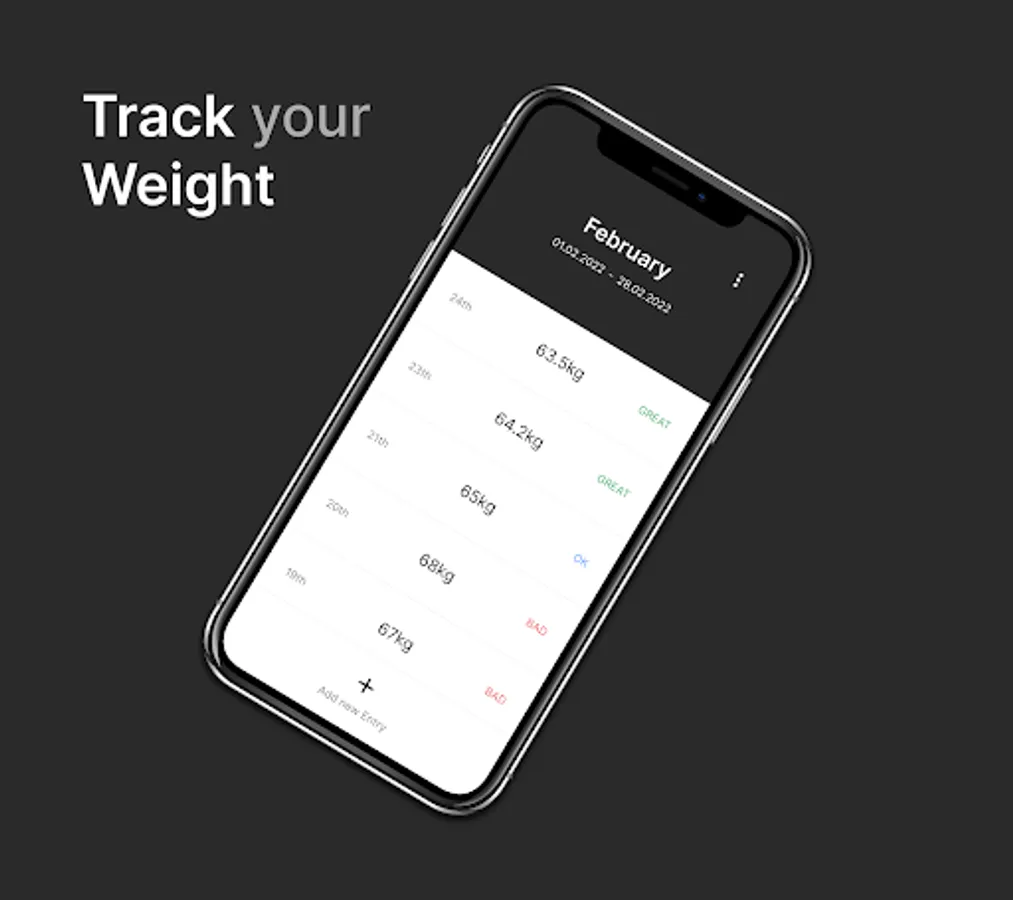 We also give you an overview of how good you were in the last days. It's like a diary but for your weight progression.